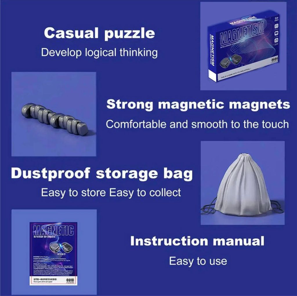 Das magnetische Brettspiel ist ein unterhaltsames und strategisches Puzzlespiel, das Ihr logisches Denken und Ihre Präzision herausfordert. Platzieren Sie die Magnete auf dem Spielfeld, ohne dass sie sich gegenseitig anziehen, und planen Sie jeden Zug sorgfältig. Das Spiel bietet Unterhaltung für Kinder und Erwachsene und kombiniert Strategie und Problemlösung.