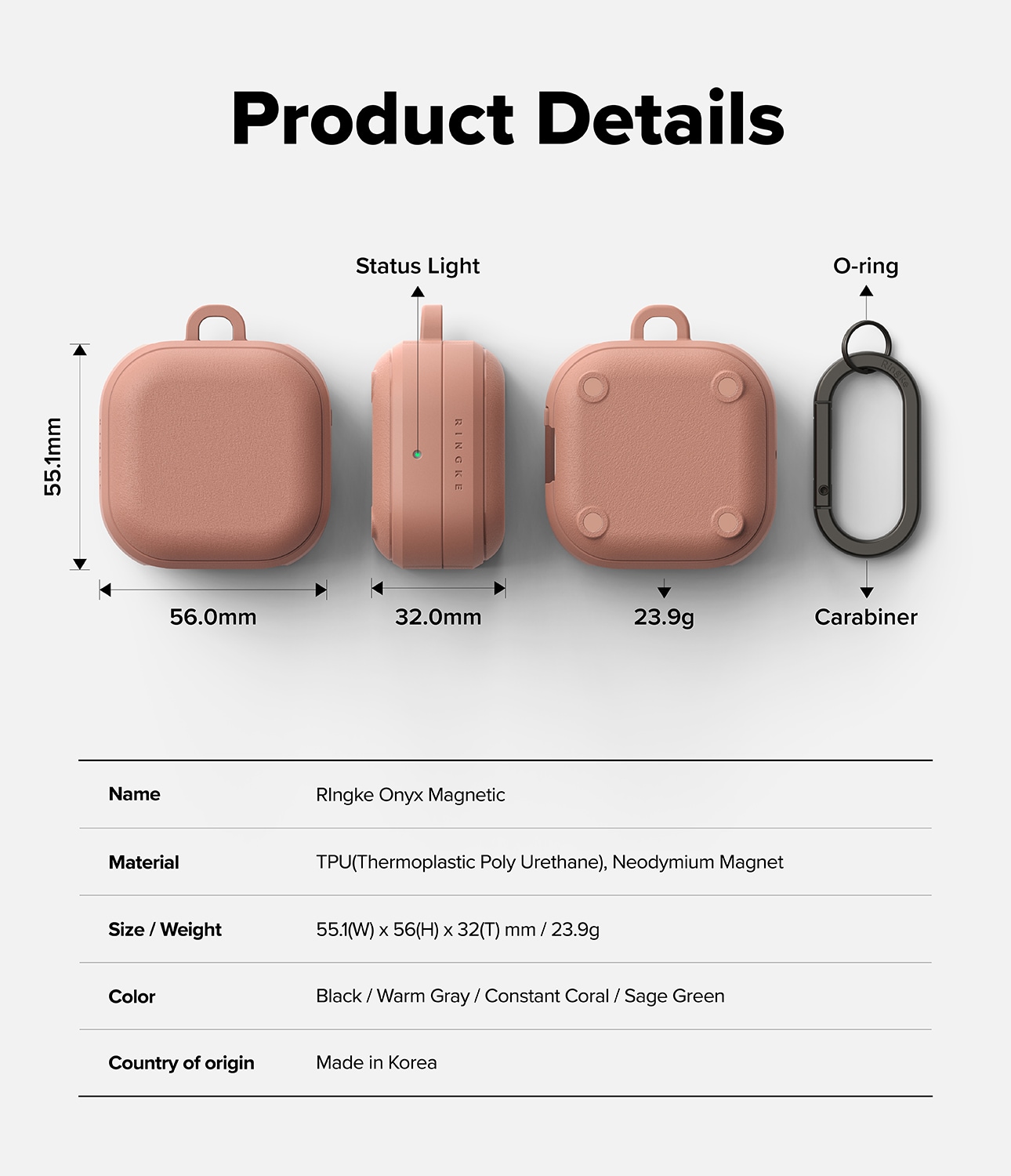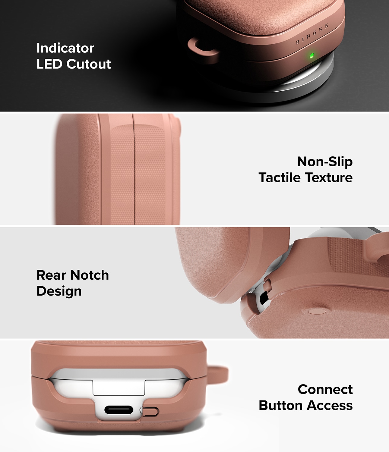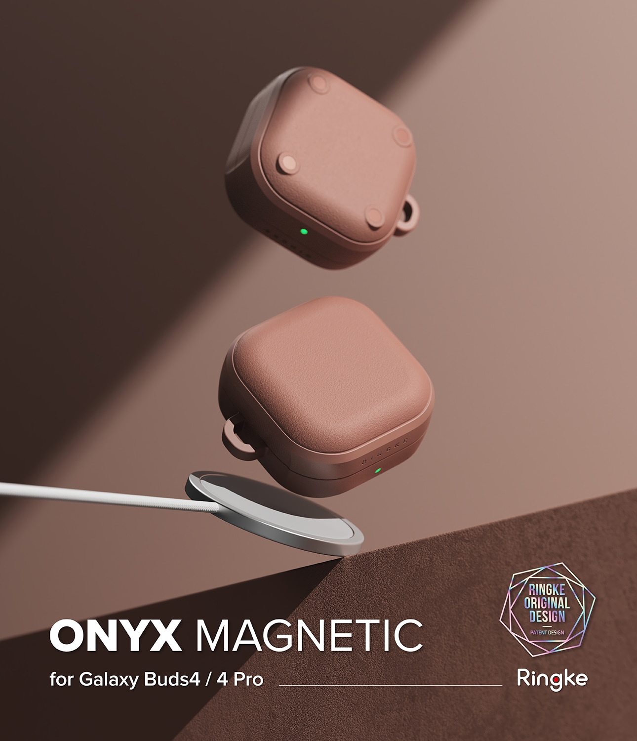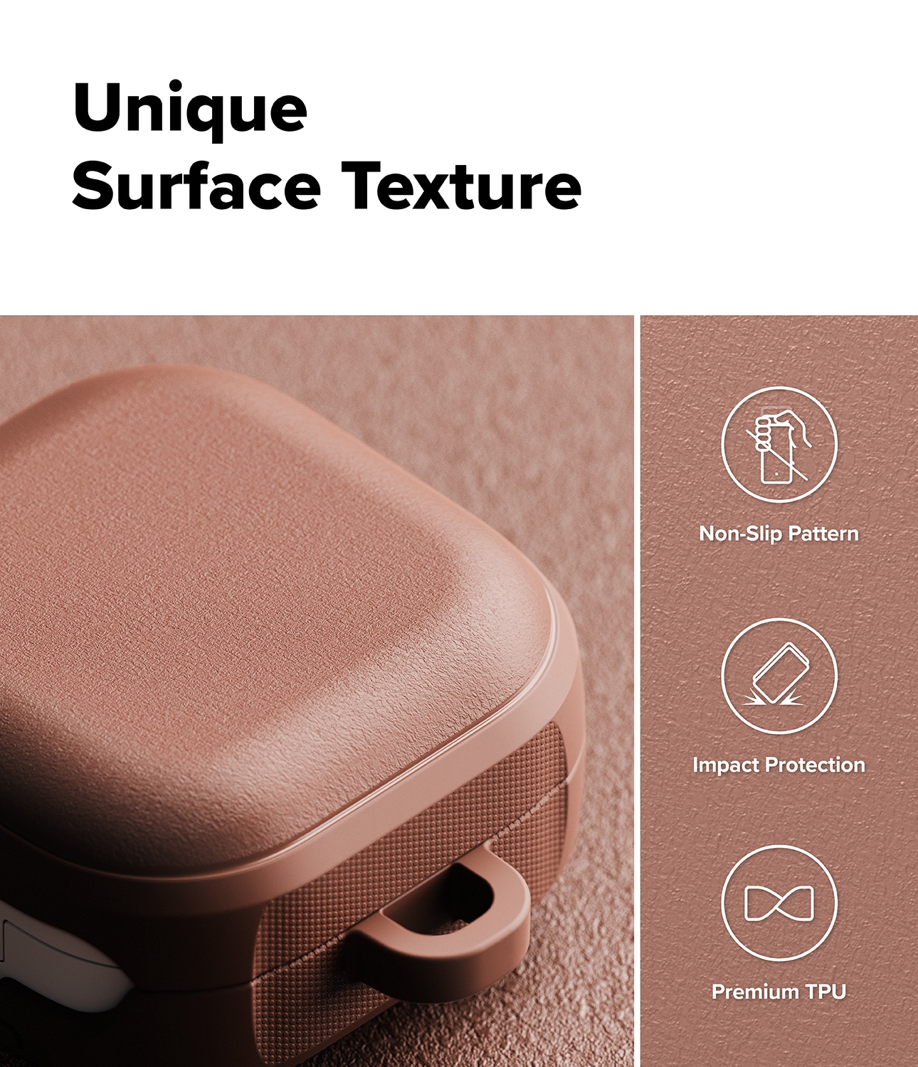 Robuste Hülle mit MagSafe und Karabiner für Samsung Galaxy Buds 4 von Ringke. Die Hülle bietet ein stilvolles Design und hervorragenden Schutz vor Stößen. Sie besteht aus flexiblem und langlebigem TPU mit einer einzigartigen matten, granulierten Textur, die sich angenehm anfühlt und Rutschgefahr sowie Fingerabdrücke verhindert.