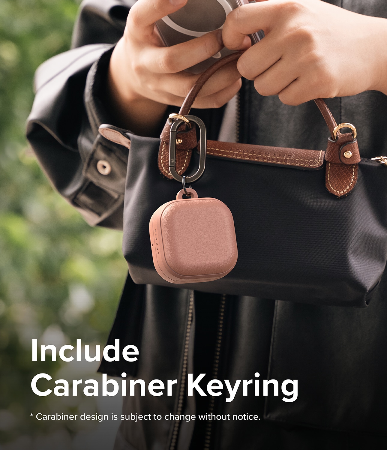 Der mitgelieferte Karabiner ermöglicht eine einfache Befestigung an Tasche oder Schlüsselbund. Mit MagSafe-Unterstützung kann das Gerät bequem drahtlos aufgeladen werden, ohne die Hülle zu entfernen.