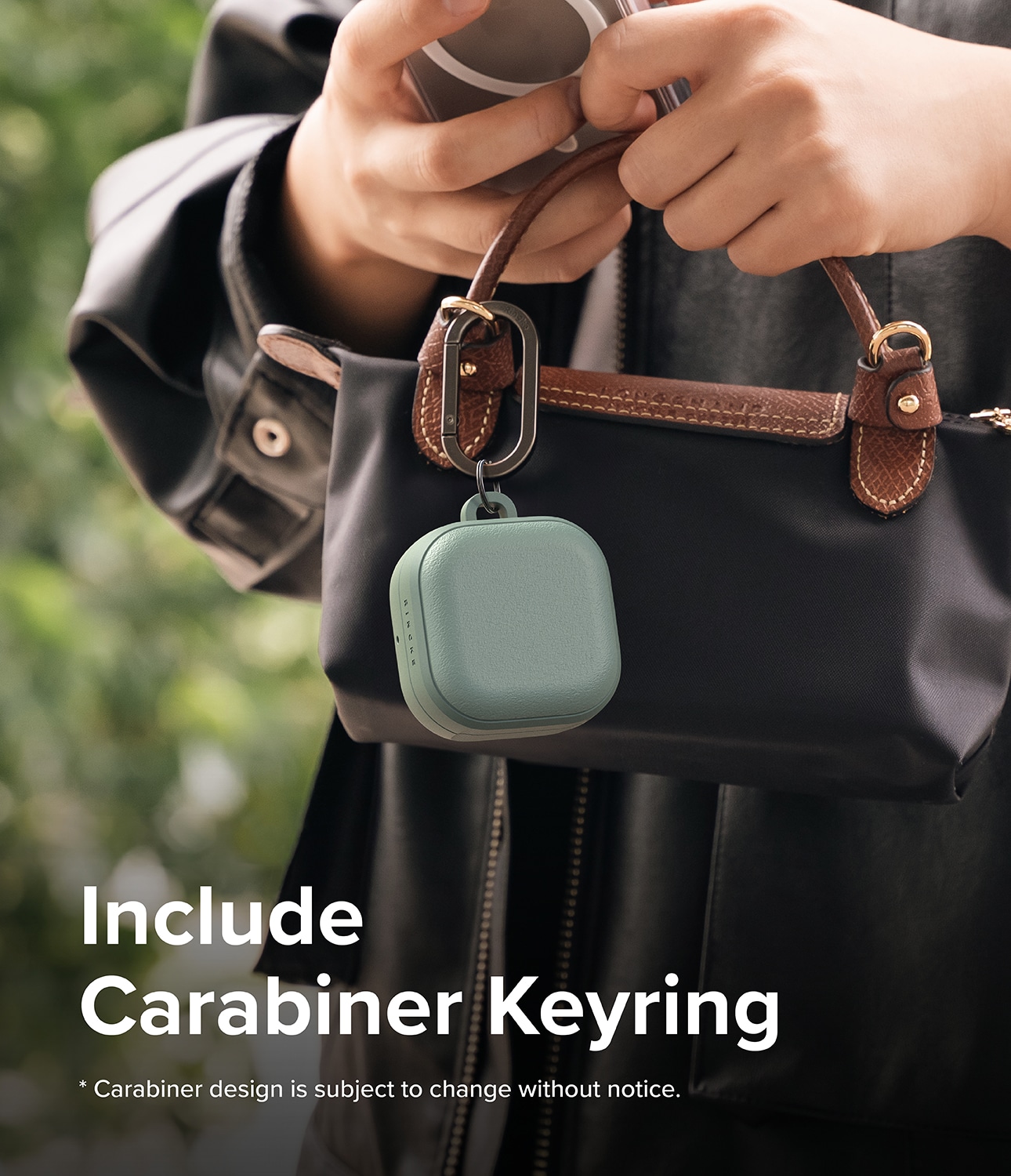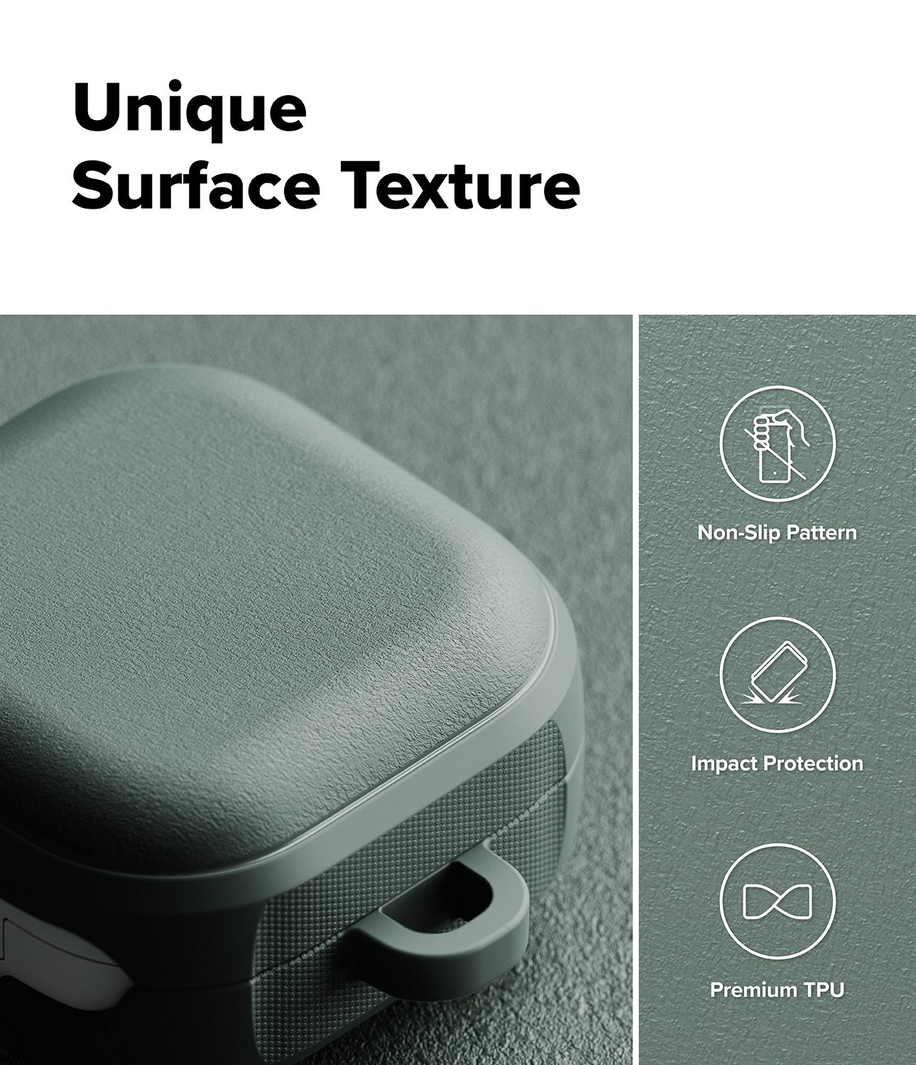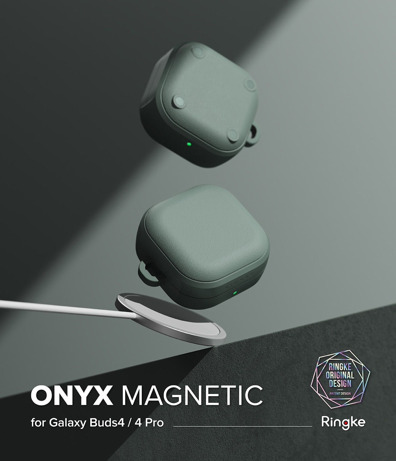 Robuste Hülle mit MagSafe und Karabiner für Samsung Galaxy Buds 4 von Ringke. Die Hülle bietet ein stilvolles Design und hervorragenden Schutz vor Stößen. Sie besteht aus flexiblem und langlebigem TPU mit einer einzigartigen matten, granulierten Textur, die sich angenehm anfühlt und Rutschgefahr sowie Fingerabdrücke verhindert.