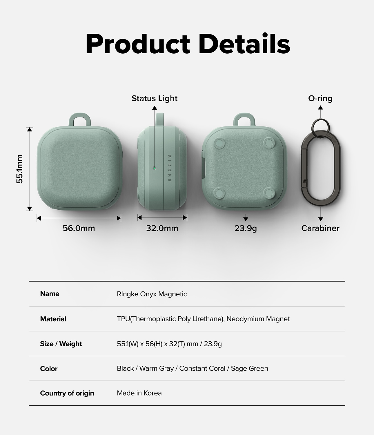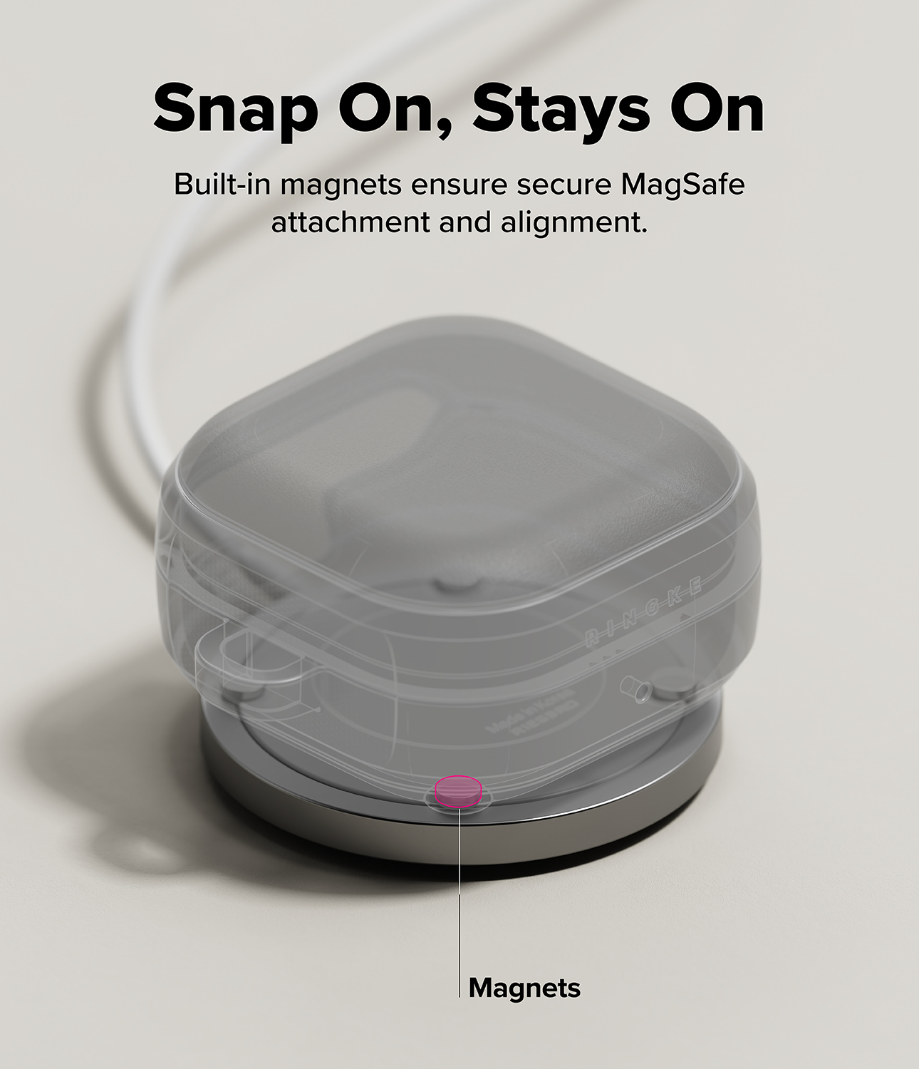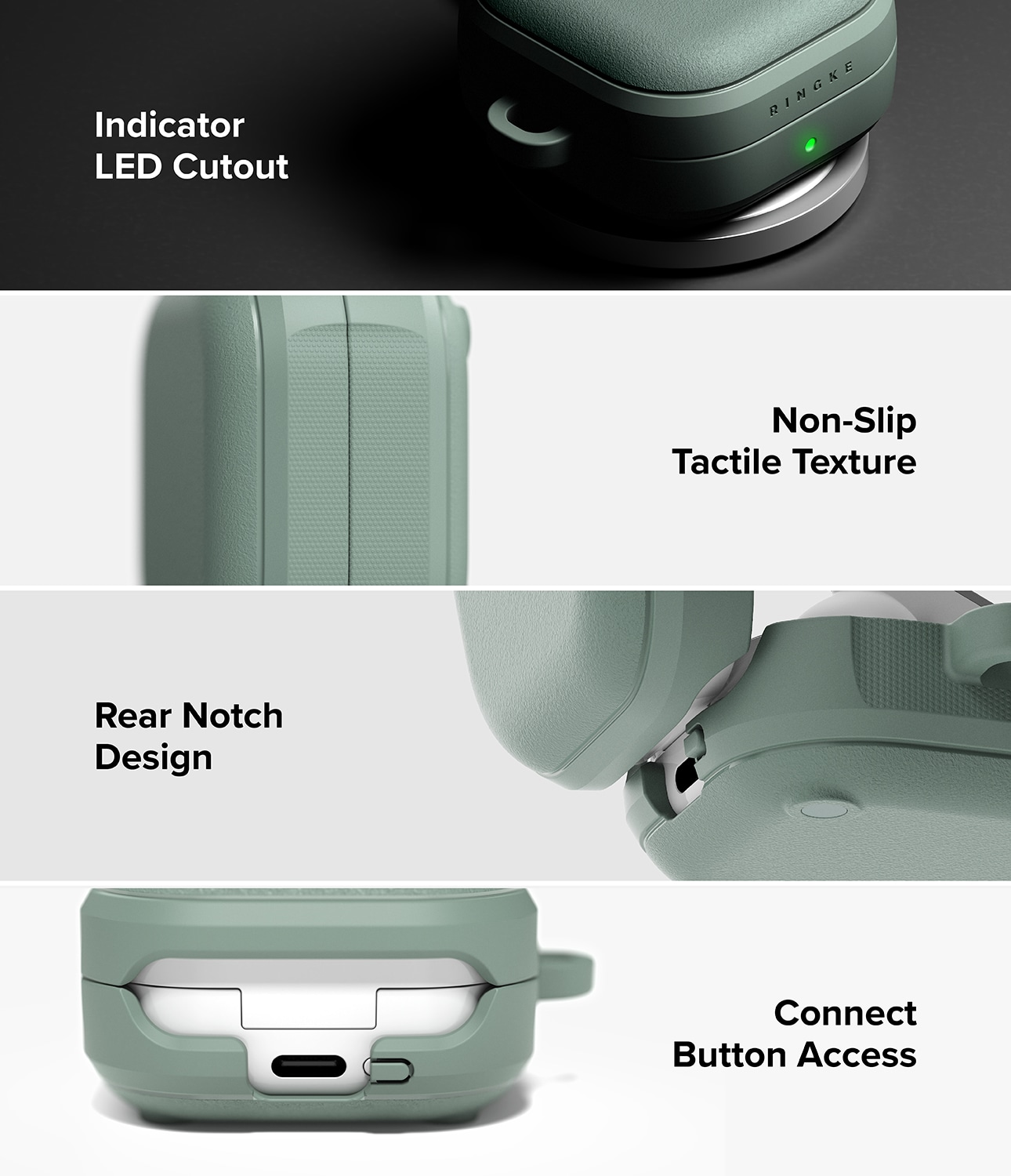 Robuste Hülle mit MagSafe und Karabiner für Samsung Galaxy Buds 4 von Ringke. Die Hülle bietet ein stilvolles Design und hervorragenden Schutz vor Stößen. Sie besteht aus flexiblem und langlebigem TPU mit einer einzigartigen matten, granulierten Textur, die sich angenehm anfühlt und Rutschgefahr sowie Fingerabdrücke verhindert.