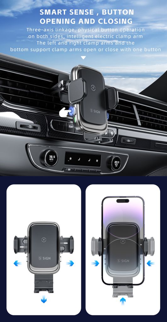 61846Auto Handyhalter mit Kabellosem Laden 15W Schwarzhttps://www.phonelife.de/ladegerate-kabel/autoladegerate/qi-magsafe-autoladegerate/auto-handyhalter-mit-kabellosem-laden-15w-schwarz?channelCountry=DEhttps://www.phonelife.de/pub_images/original/1_-_-_18_-_-_002.jpgInStock23.95EUR/ladegerate-kabel/autoladegerate/qi-magsafe-autoladegerateSiGN<p>SiGN Auto Handyhalter mit kabelloser Ladefunktion 15W ist eine praktische und intelligente Lösung für die sichere Nutzung des Smartphones während der Fahrt. Die integrierte Qi-Ladefunktion ermöglicht kabelloses Laden kompatibler Smartphones, während sie stabil im Halter sitzen. Der integrierte Berührungssensor öffnet und schließt die Halteklammern automatisch per Fingerdruck, wodurch das Einsetzen oder Entfernen des Smartphones mit einer Hand erleichtert wird. Der Halter lässt sich einfach am Lüftungsgitter des Fahrzeugs befestigen und bietet eine stabile Position mit guter Sicht auf das Display während der Fahrt. Die kompakte Konstruktion aus Aluminiumlegierung und Glas sorgt für langlebige Qualität und ein elegantes Design. Ideal für den täglichen Einsatz im Auto, wenn Halterung und kabelloses Laden kombiniert werden sollen.</p>