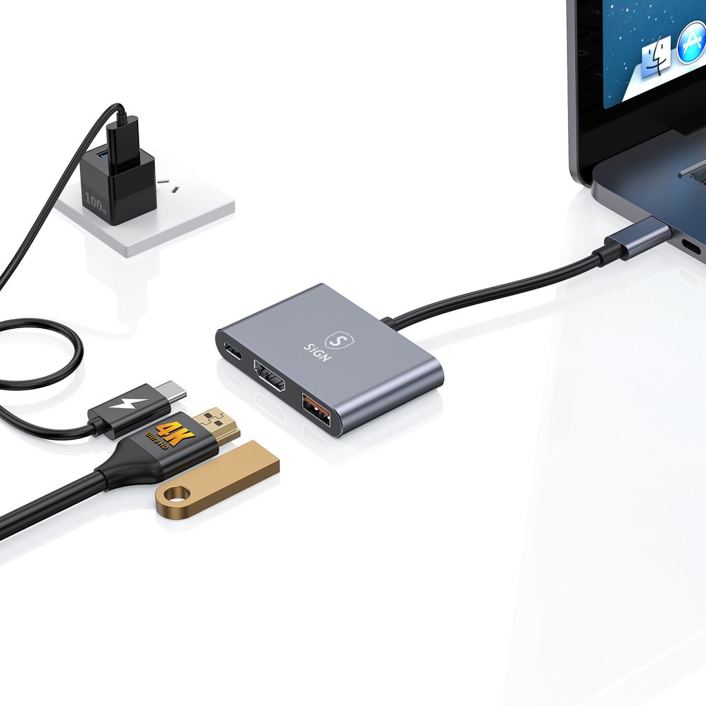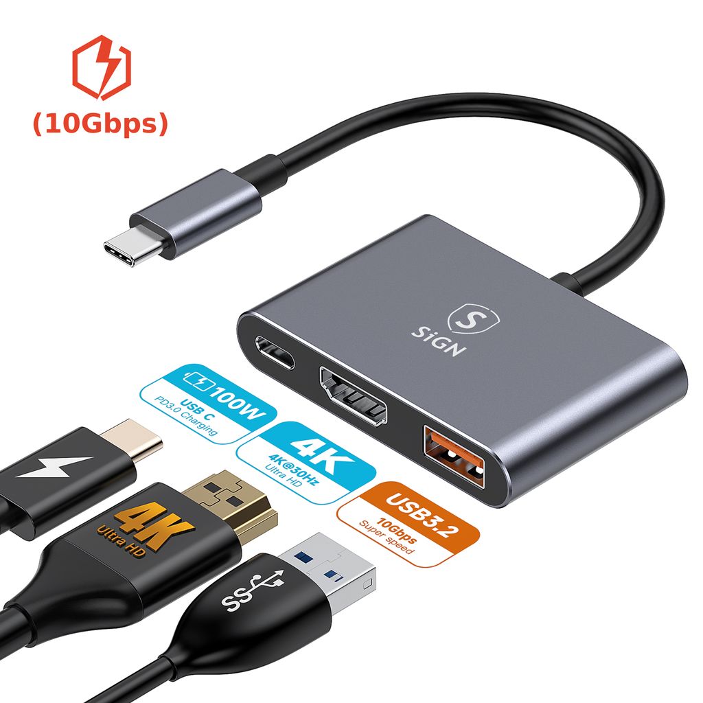 623083-in-1 Hub USB-C auf USB-C + USB-A + HDMI 4K 100Whttps://www.phonelife.de/ladegerate-kabel/bild/adapter/3-in-1-hub-usb-c-auf-usb-c-usb-a-hdmi-4k-100w?channelCountry=DEhttps://www.phonelife.de/pub_images/original/0_-_-_5_-_-_HYD-9991T_20_283_29_20-_20Copy_N5dnn_CghkRmY5cXe6m2s.jpgInStock18.95EUR/ladegerate-kabel/bild/adapterSiGN<p>Der SiGN USB-C Hub ist ein kompakter und praktischer Adapter der die Anschlussmöglichkeiten für dein Notebook oder andere Geräte mit USB-C-port erweitert. Dank mehrerer Anschlüsse kannst du Monitor, Zubehör und Stromversorgung gleichzeitig über denselben Hub verbinden. Der HDMI-Anschluss unterstützt eine Auflösung von bis zu 4K bei 30 Hz und sorgt für ein klares Bild bei Arbeit, Präsentationen oder Unterhaltung. Der USB-A-Anschluss ermöglicht eine schnelle Datenübertragung von bis zu 10 Gbps wodurch sich Dateien einfach zwischen Geräten übertragen lassen. Zusätzlich verfügt der Hub über einen USB-C-Anschluss mit Unterstützung für Power Delivery bis zu 100W sodass du dein Notebook laden kannst während andere Anschlüsse genutzt werden. Gefertigt aus robusten Materialien für eine langlebige Nutzung.</p>