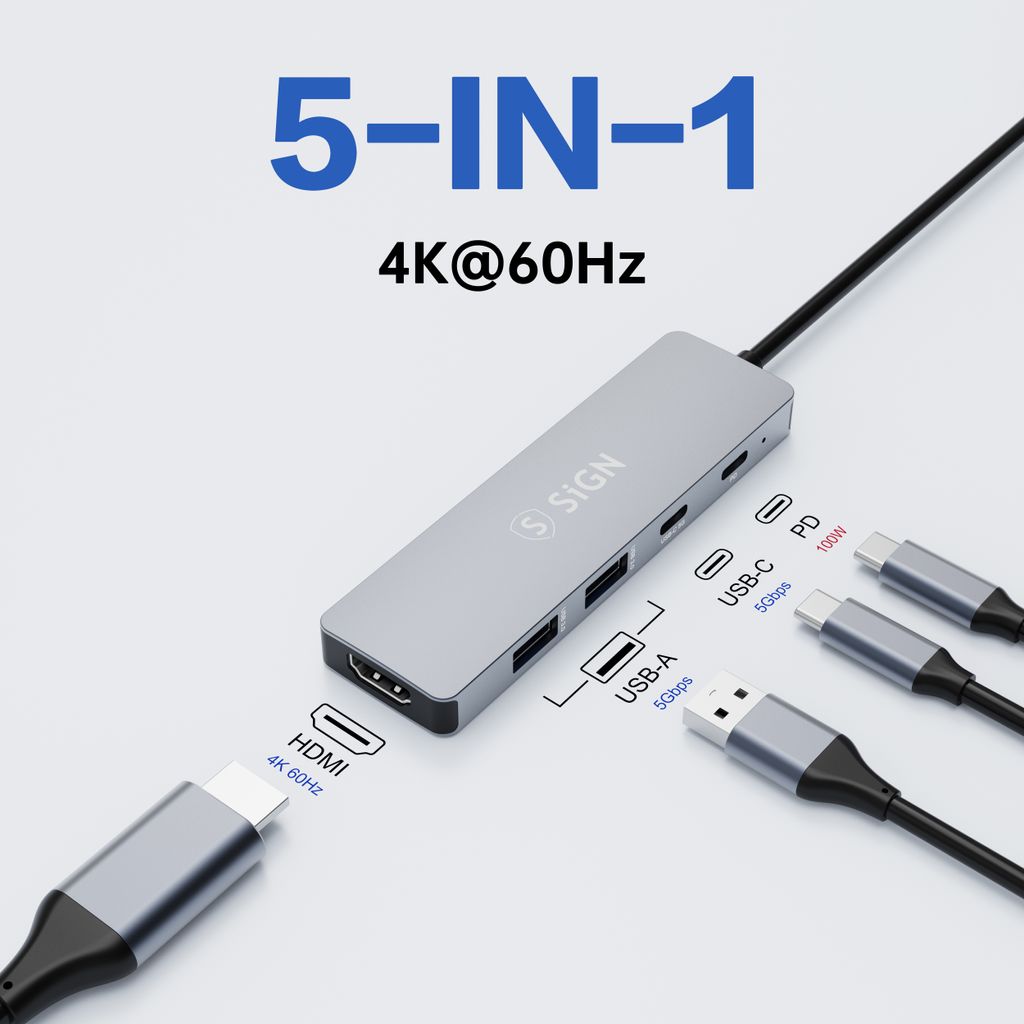 618815-in-1 Hub USB-C zu 2x USB-A + HDMI + USB-C + PD Grauhttps://www.phonelife.de/ladegerate-kabel/bild/adapter/5-in-1-hub-usb-c-zu-2x-usb-a-hdmi-usb-c-pd-grau?channelCountry=DEhttps://www.phonelife.de/pub_images/original/0_-_-_5_-_-_1_s_laqLQZgDIjb6nt82PwC.jpgInStock19.95EUR/ladegerate-kabel/bild/adapterSiGN<p>Der SiGN 5-in-1 USB-C HUB ist ein praktischer und leistungsstarker Adapter, der Ihrem Laptop oder Tablet mehr Anschlussmöglichkeiten bietet. Mit mehreren Anschlüssen können Sie Zubehör, Bildschirme und Stromversorgung ganz einfach über einen einzigen USB-C Anschluss verbinden. Der HUB ist mit einem HDMI Ausgang ausgestattet, der bis zu 4K 60Hz unterstützt und ein klares und scharfes Bild liefert, ideal für Arbeit, Präsentationen und Streaming. Die zwei USB-A Anschlüsse sowie der USB-C Anschluss ermöglichen eine schnelle Datenübertragung von bis zu 5Gbps zum Anschluss externer Speichergeräte und weiterer Zubehörgeräte. Mit Unterstützung für bis zu 100W Power Delivery können Sie Ihr Gerät gleichzeitig schnell und effizient aufladen. Das kompakte und leichte Design macht den Adapter einfach zu transportieren und perfekt für Büro, Zuhause oder unterwegs.</p>