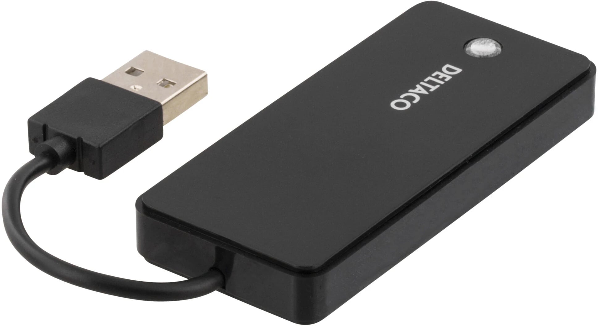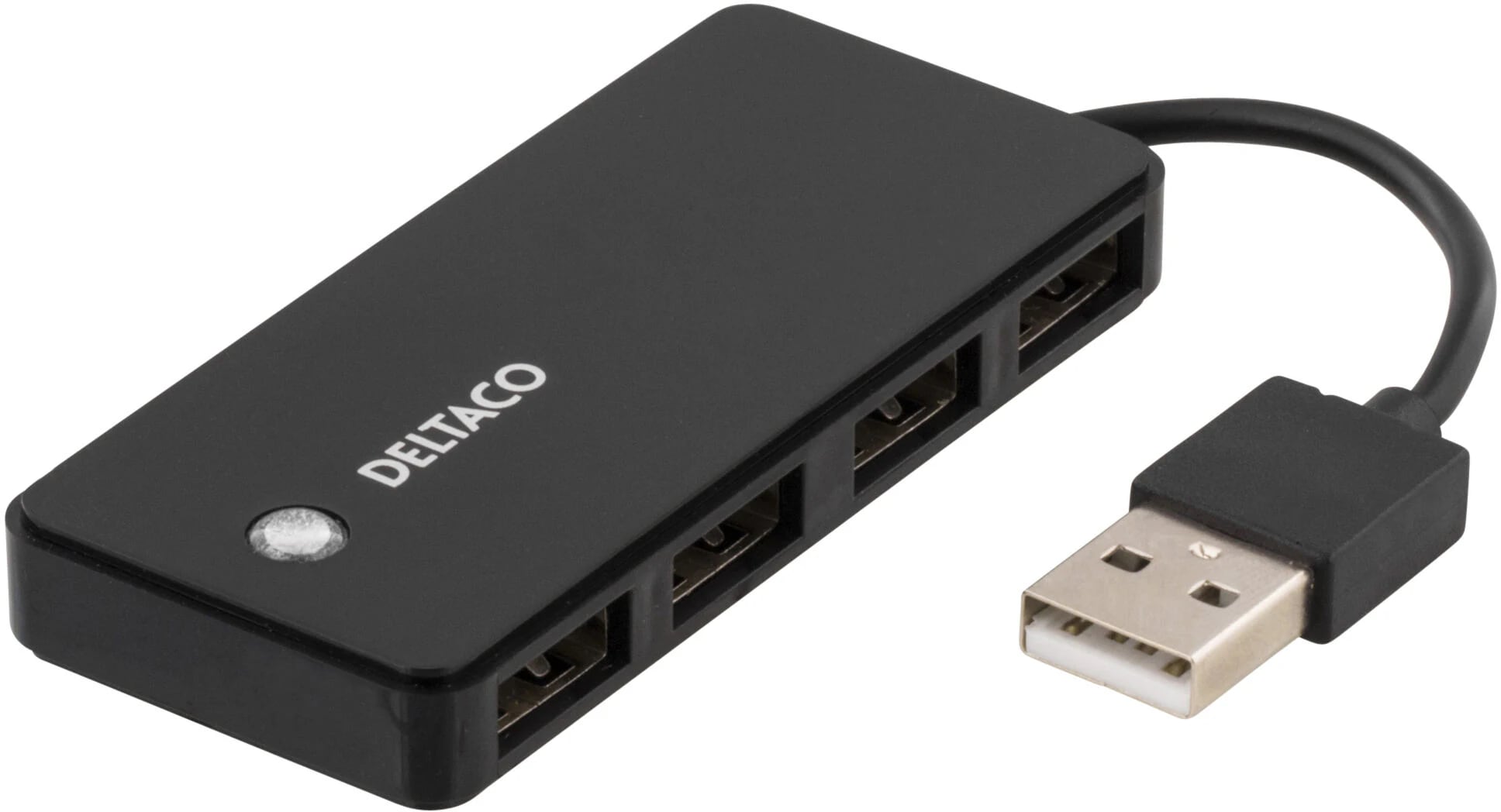 Dieser kompakte USB-Hub von Deltaco bietet Ihnen vier zusätzliche USB-A-Ports, ideal zum einfachen Anschließen mehrerer Geräte gleichzeitig. Mit einer USB 2.0-Verbindung erhalten Sie eine stabile und effiziente Datenübertragung, und der Hub verfügt über eine LED-Anzeige, die zeigt, wann er mit einem Gerät verbunden ist.