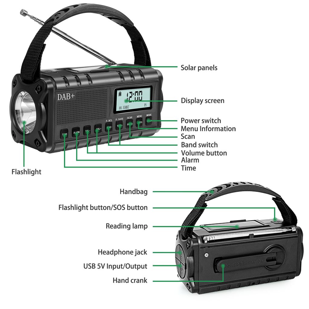 <p>Die robuste Konstruktion macht das Radio langlebig und leicht zu transportieren. Die integrierte LED-Taschenlampe sorgt für starkes Licht bei Dunkelheit und in Notfällen. Das Gerät fungiert zudem als Powerbank, sodass Smartphones und andere USB-Geräte geladen werden können. Das klare Display und das praktische Design ermöglichen eine einfache Nutzung zu Hause und unterwegs.</p>