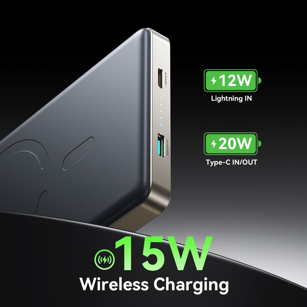 Die Powerbank unterstützt kabelloses Laden mit bis zu 15W sowie Schnellladen mit bis zu 20W über USB-C, wodurch sie ideal für Smartphones, Kopfhörer, Smartwatches und andere USB-Geräte ist. Der integr... Weiterlesen