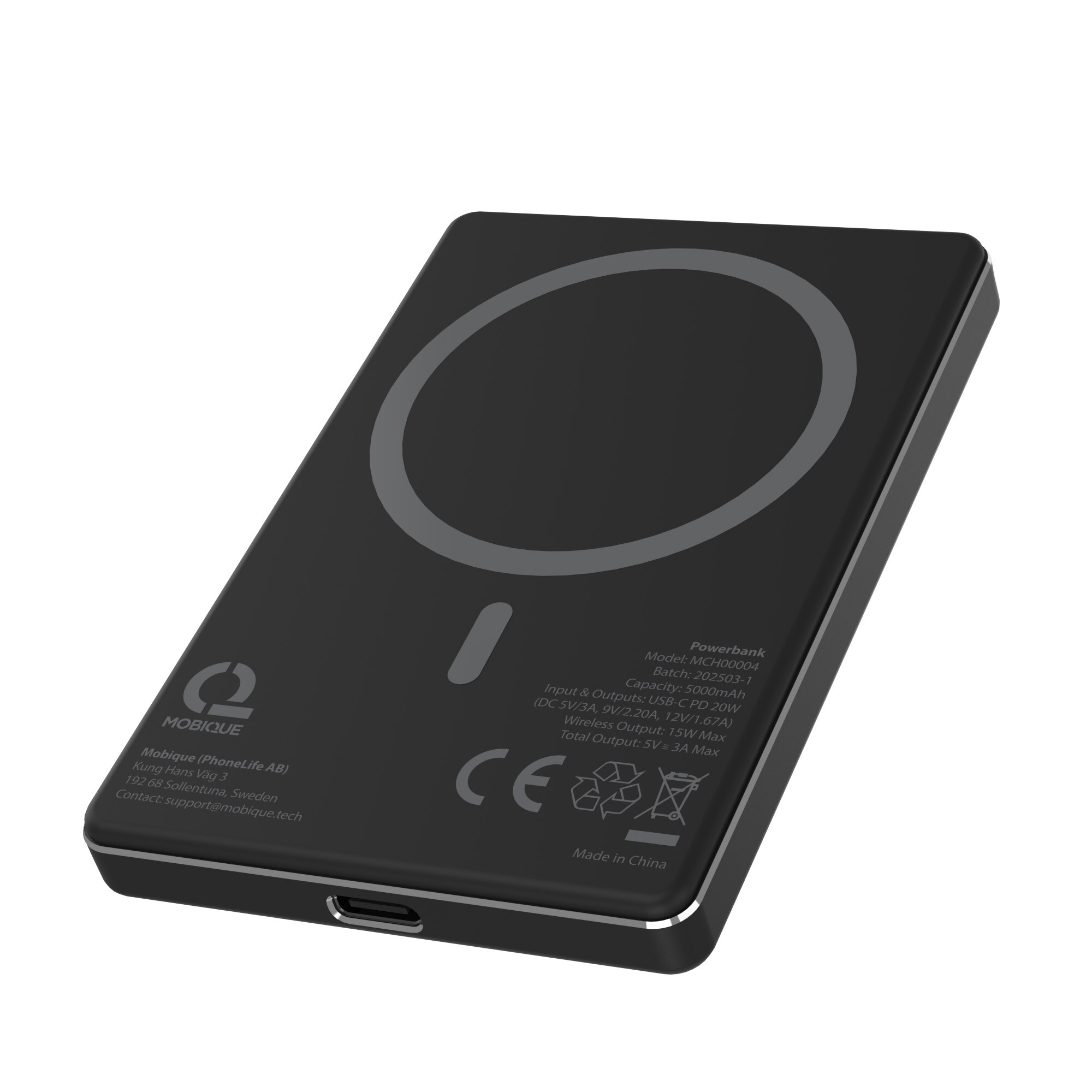 Kompakte und magnetische Powerbank von Mobique. Perfekt für alle, die kabellos und schnell laden möchten, ganz ohne Aufwand. Der integrierte Magnet sorgt dafür, dass die Powerbank sicher auf der Rückseite deines MagSafe-kompatiblen Smartphones haftet und ein stabiles, zuverlässiges Ladeerlebnis bietet.