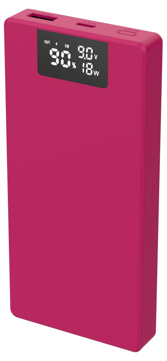 62120Powerbank USB-A + USB-C mit Display 10000 mAh PD 20W Rosahttps://www.phonelife.de/ladegerate-kabel/powerbanks/powerbank-usb-a-usb-c-mit-display-10000-mah-pd-20w-rosa?channelCountry=DEhttps://www.phonelife.de/pub_images/original/68734966005790.jpgInStock28.95EUR/ladegerate-kabel/powerbanks<p>Powerbank USB-A + USB-C mit Display ist eine leistungsstarke und kompakte Lösung zum schnellen und flexiblen Laden von Smartphone, Tablet, Kopfhörern und anderen Geräten unterwegs. Mit einer Kapazität von 10000 mAh und Unterstützung für Schnellladen über USB-C Power Delivery kann dein Gerät in etwa 30 Minuten auf bis zu circa 50 % geladen werden. Das klare LED-Display zeigt den verbleibenden Akkustand und den Ladestatus sodass du jederzeit den Überblick behältst.</p>