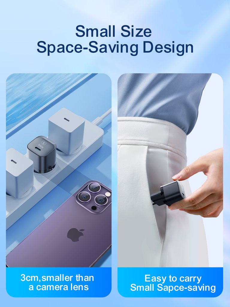 <p>- USB-C Mini Ladegerät mit bis zu 20W Leistung<br />
