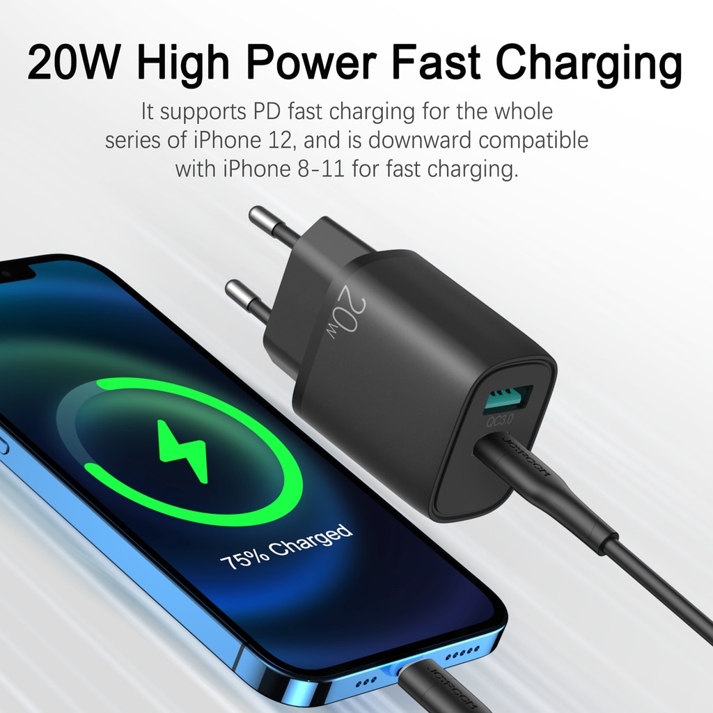 Das Ladegerät verfügt über einen USB-C- und einen USB-A-Anschluss, sodass zwei Geräte gleichzeitig geladen werden können. Das kompakte Design macht es ideal für Zuhause, Büro oder Reisen.