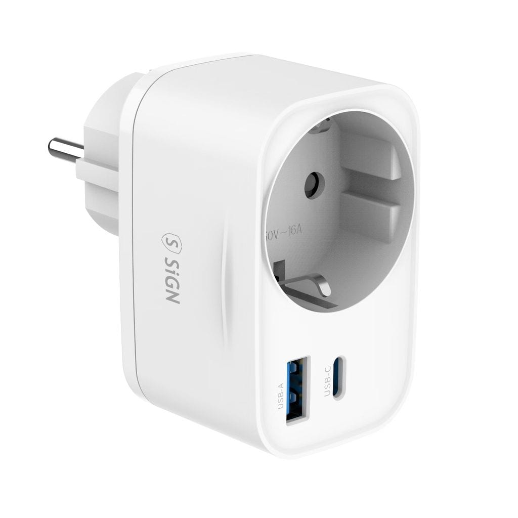 62139Wandadapter mit Steckdose + USB-C + USB-A 20W Weißhttps://www.phonelife.de/ladegerate-kabel/wandladegerate/usb-c-wandladegerate/wandadapter-mit-steckdose-usb-c-usb-a-20w-wei?channelCountry=DEhttps://www.phonelife.de/pub_images/original/0_-_-_5_-_-_62a58c9b5c7a83f22f8384ec8084c90_KRmie02xc_LEMD2IM787v.jpgInStock16.95EUR/ladegerate-kabel/wandladegerate/usb-c-wandladegerateSiGN<p>Kompakter und vielseitiger Wandadapter von SiGN, mit dem Sie mehrere Geräte gleichzeitig zu Hause, im Büro oder auf Reisen laden können. Der Adapter verfügt über eine Durchgangssteckdose, einen USB-C-Anschluss und einen USB-A-Anschluss, sodass Sie Ihre normale Steckdose weiterhin nutzen können, während Ihre Geräte geladen werden. Der USB-C-Anschluss unterstützt Schnellladen über Power Delivery mit bis zu 20 W für kompatible Smartphones, Tablets und andere Geräte, während der USB-A-Anschluss eine stabile Stromversorgung für klassische USB-Geräte bietet. Das kompakte Design macht den Adapter ideal für den Einsatz am Bett, auf dem Schreibtisch oder im Wohnzimmer. Integrierter Schutz vor Überstrom und Kurzschluss sorgt für eine sichere Nutzung im Alltag.</p>