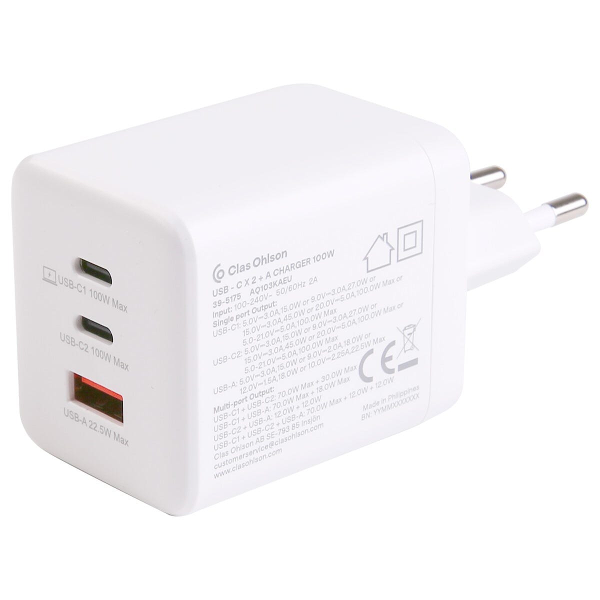 62126Wandladegerät USB-A + 2 x USB-C GaN 100W Weißhttps://www.phonelife.de/ladegerate-kabel/wandladegerate/usb-c-wandladegerate/wandladegerat-usb-a-2-x-usb-c-gan-100w-wei?channelCountry=DEhttps://www.phonelife.de/pub_images/original/68765498343454.jpgInStock42.95EUR/ladegerate-kabel/wandladegerate/usb-c-wandladegerate<p>Wandladegerät USB-A + 2 x USB-C GaN 100W ist eine leistungsstarke und flexible Ladelösung für alle die mehrere Geräte schnell und effizient laden möchten. Dank Unterstützung für USB-C Power Delivery bis zu 100 W eignet sich das Ladegerät sowohl für Smartphones und Tablets als auch für Laptops. Die kompakte GaN-Technologie ermöglicht hohe Leistung in einem handlichen Format wodurch das Ladegerät ideal für Zuhause, Büro oder unterwegs ist.</p>