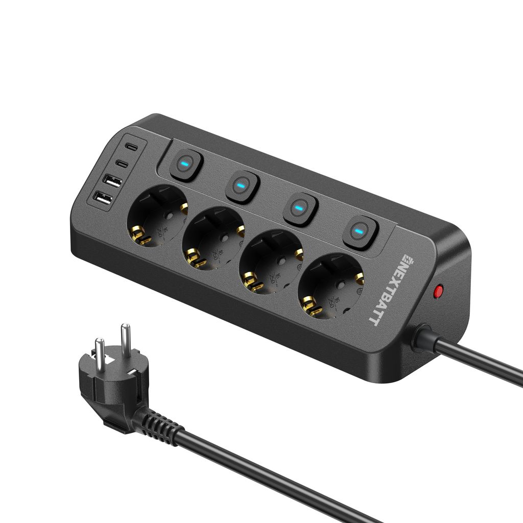 623304-fach Steckdosenleiste mit 2x USB-C + 2x USB-A 1.8m Schwarzhttps://www.phonelife.de/ladegerate-kabel/zubehor-ladegerate-kabel/4-fach-steckdosenleiste-mit-2x-usb-c-2x-usb-a-1-8m-schwarz?channelCountry=DEhttps://www.phonelife.de/pub_images/original/0_-_-_5_-_-_1_fVm0KOOOwFm6T101C86aI.jpgInStock27.95EUR/ladegerate-kabel/zubehor-ladegerate-kabelNEXTBATT<p>Verbessern Sie Ihre Stromversorgung mit der Steckdosenleiste von NEXTBATT, die Funktionalität, Sicherheit und effizientes Laden kombiniert. Mit vier AC-Steckdosen und vier USB-Ports, 2x USB-C und 2x USB-A, können Sie mehrere Geräte gleichzeitig einfach und organisiert laden. Die Steckdosenleiste eignet sich ideal für Zuhause und Büro, wo ein hoher Bedarf an schneller und stabiler Stromversorgung besteht. Das 1,8 Meter lange Kabel ermöglicht eine flexible Platzierung, während die robuste Konstruktion auch leistungsstärkere Geräte problemlos versorgt. Eine optimale Lösung für Smartphones, Tablets und andere elektronische Geräte mit Fokus auf Leistung und sichere Nutzung. Das intelligente dreieckige Design mit einem 90-Grad-Winkel sorgt dafür, dass die Steckdosenleiste problemlos in Ecken, entlang von Wänden oder unter Tischkanten passt und eine diskrete sowie platzsparende Installation ermöglicht.</p>