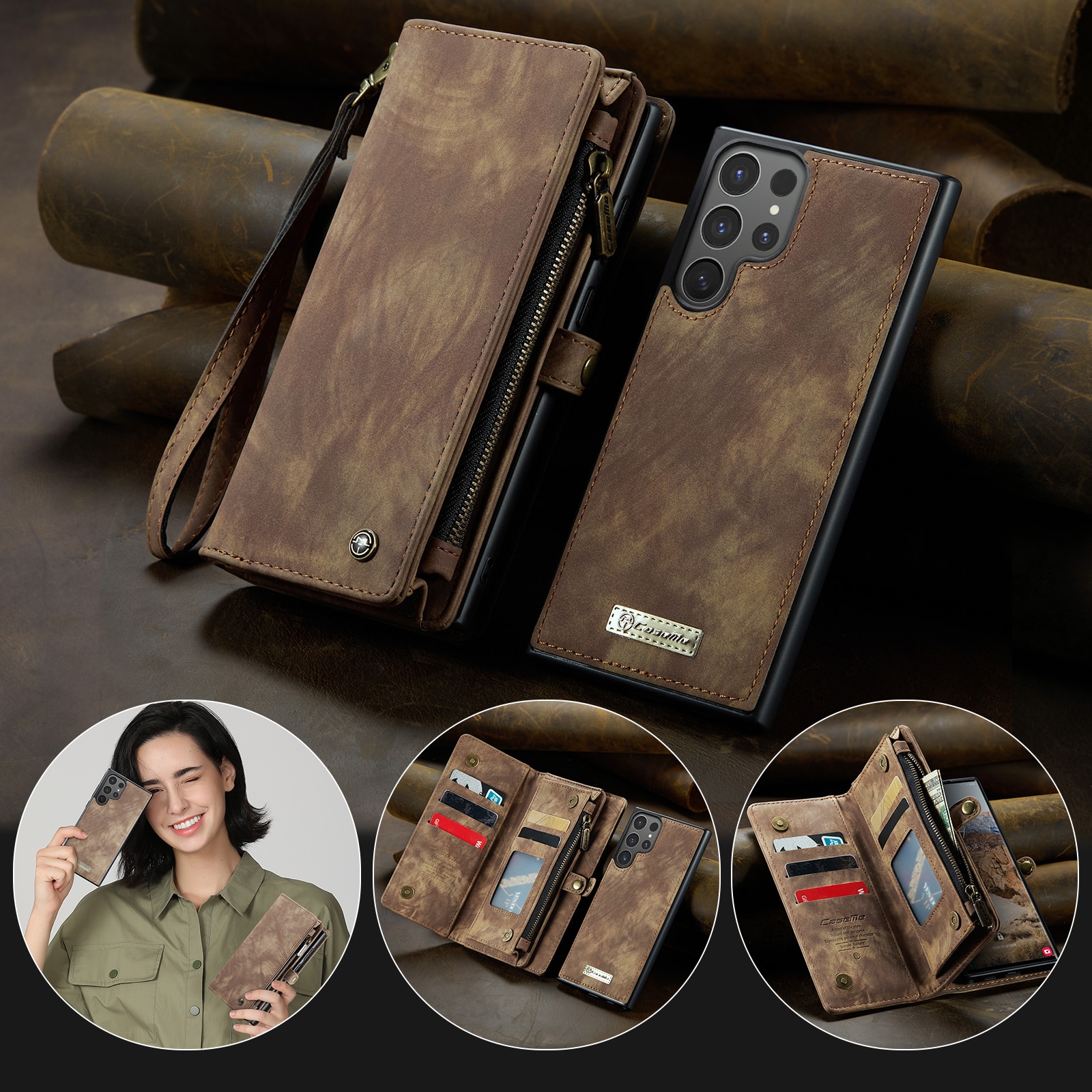 Multi-Slot Handytasche für Samsung Galaxy S26 Ultra. Geräumige und sehr praktische Portemonnaie-Hülle mit viel Platz für Karten und Geldscheine. Dein Handy sitzt sicher in der abnehmbaren Magnet-Hülle, und du kannst jederzeit zwischen nur Hülle oder Portemonnaie-Hülle wechseln.