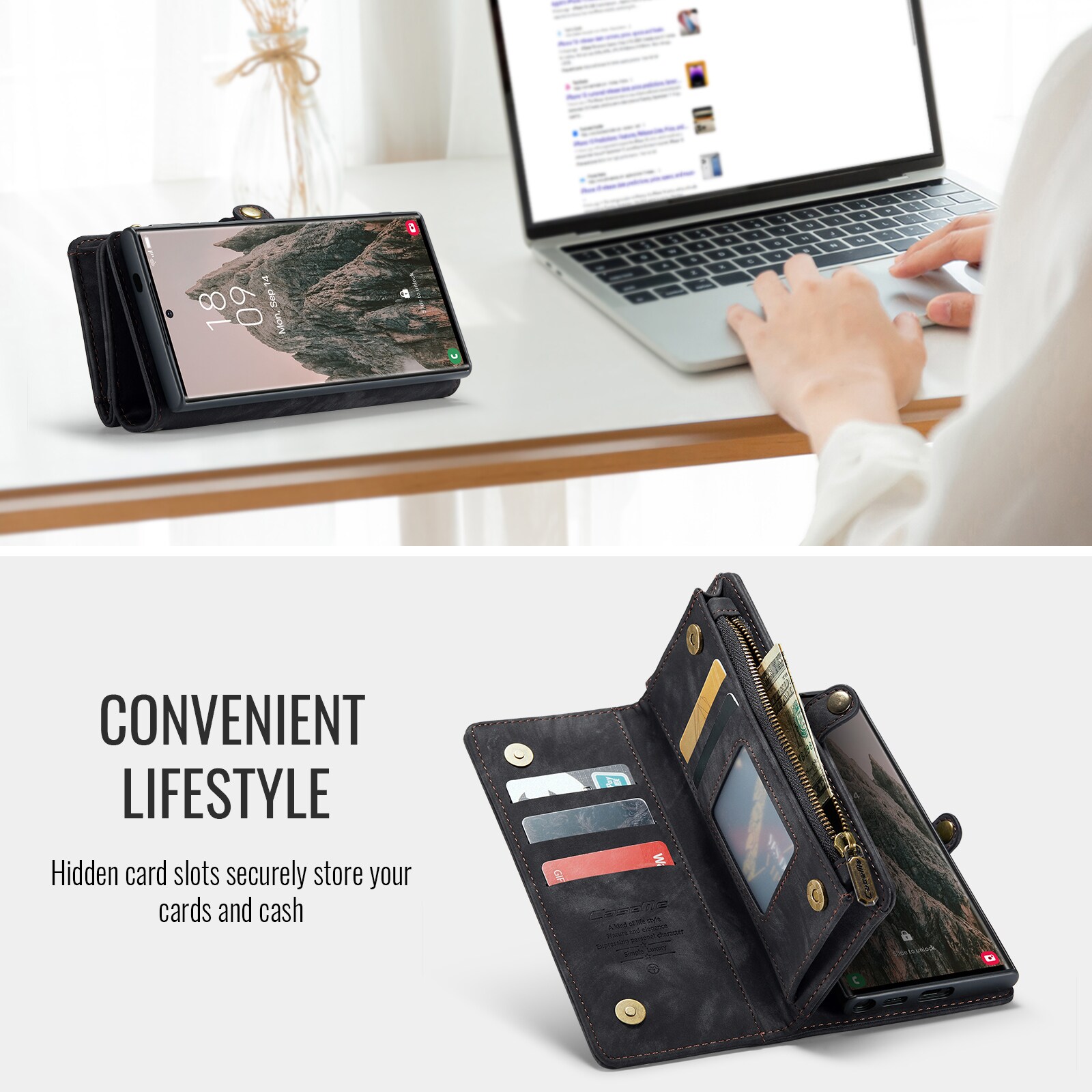 Multi-Slot Handytasche für Samsung Galaxy S26 Ultra. Geräumige und sehr praktische Portemonnaie-Hülle mit viel Platz für Karten und Geldscheine. Dein Handy sitzt sicher in der abnehmbaren Magnet-Hülle, und du kannst jederzeit zwischen nur Hülle oder Portemonnaie-Hülle wechseln.
