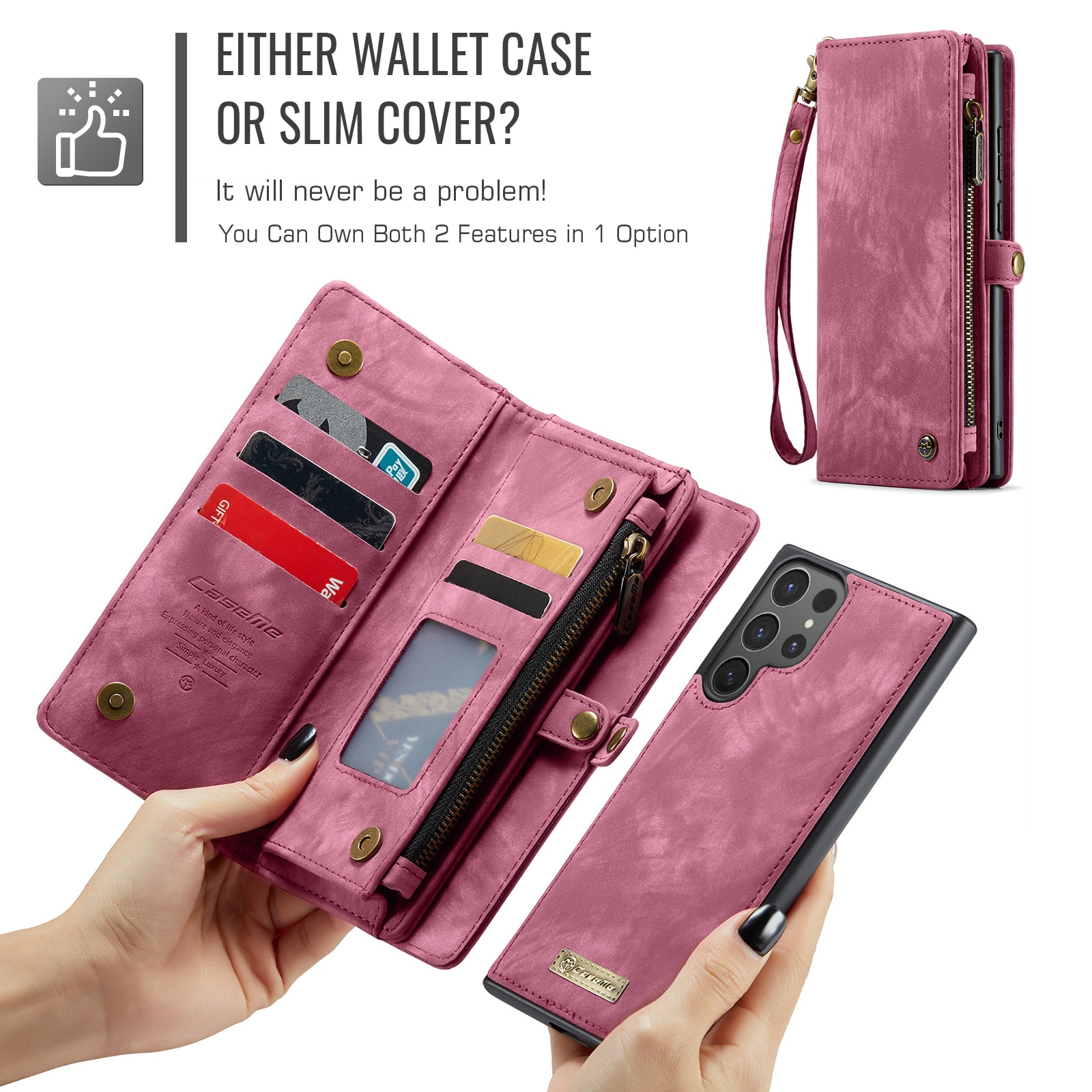 Multi-Slot Handytasche für Samsung Galaxy S26 Ultra. Geräumige und sehr praktische Portemonnaie-Hülle mit viel Platz für Karten und Geldscheine. Dein Handy sitzt sicher in der abnehmbaren Magnet-Hülle, und du kannst jederzeit zwischen nur Hülle oder Portemonnaie-Hülle wechseln.