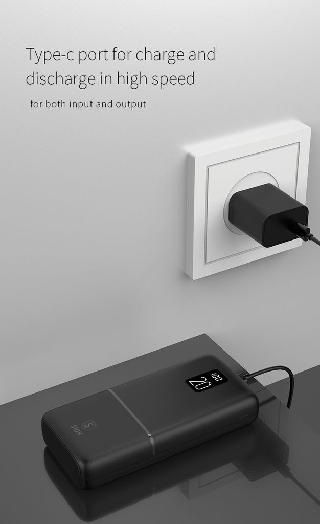 Die Powerbank verfügt über einen USB-C-Anschluss und zwei USB-A-Anschlüsse, sodass Sie bis zu drei Geräte gleichzeitig laden können. Sie unterstützt Schnellladen und verfügt über integrierte Sicherheitsfunktionen für sicheres und stabiles Laden. Die LED-Anzeigen zeigen den Batteriestand deutlich an.