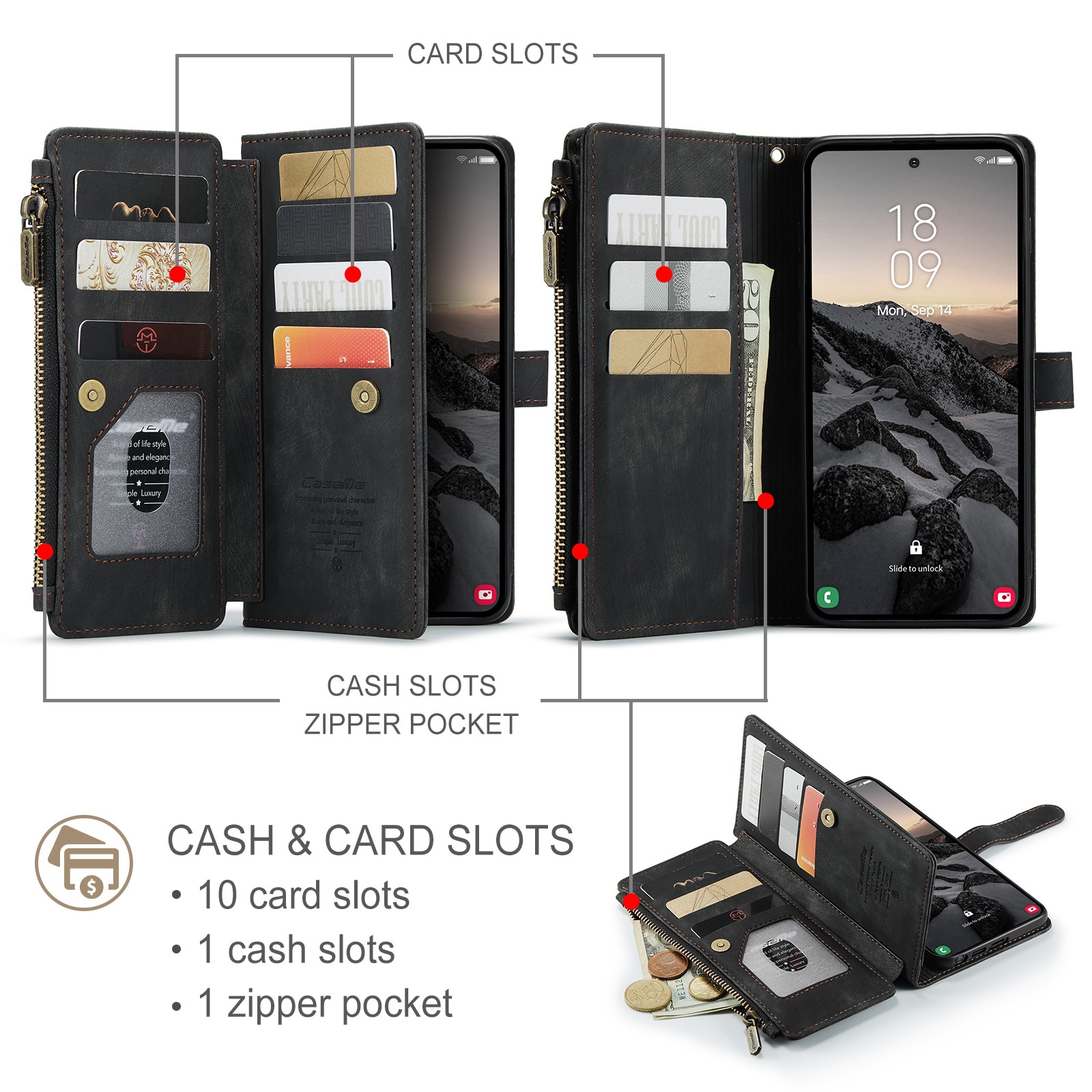 Portemonnaie-Hülle für Samsung Galaxy S26 Ultra von CaseMe. Das Portemonnaie verfügt über 7 Kartenfächer, ein Geldscheinfach und ein geräumiges Münzfach mit Reißverschluss.
