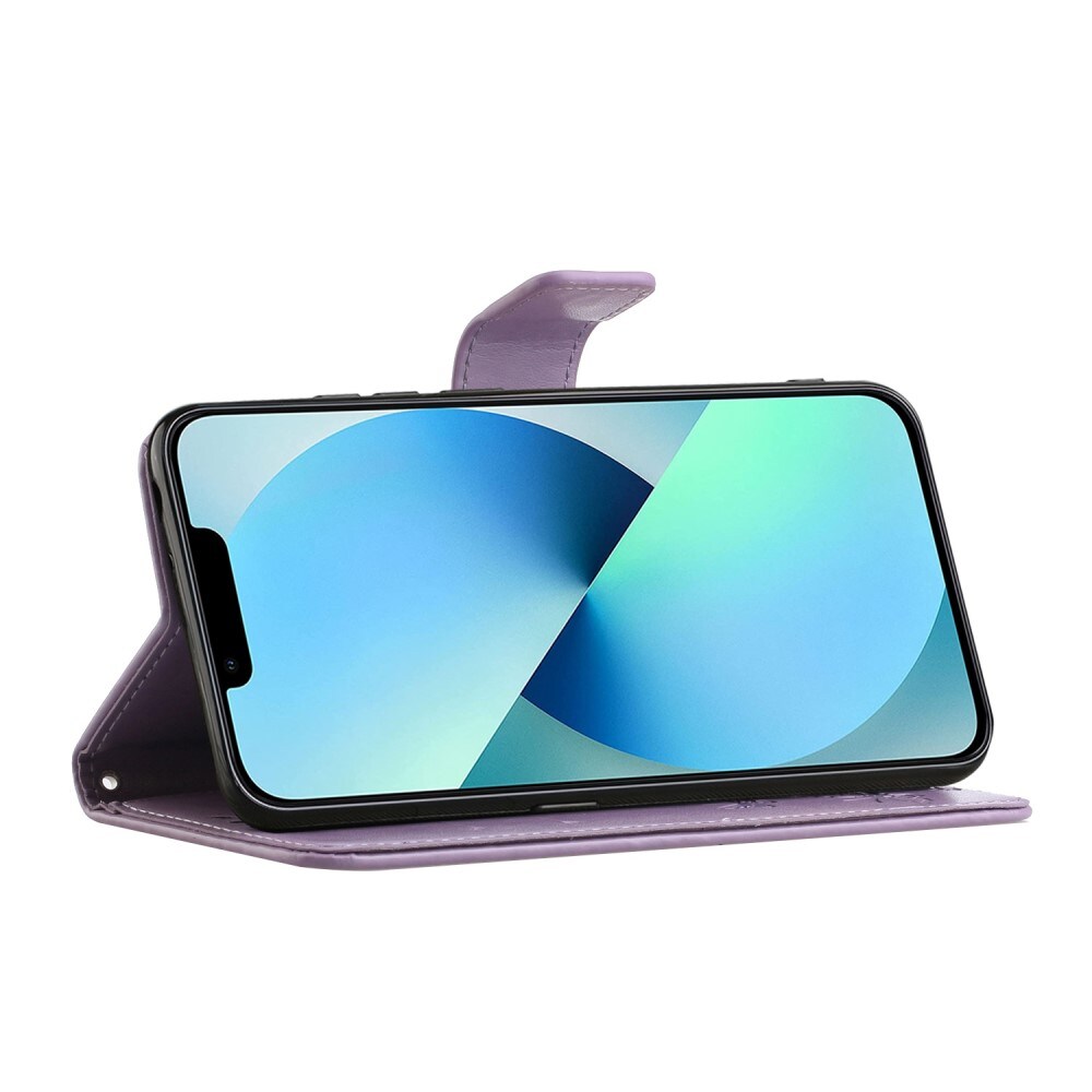 Schicke Handy-Hülle aus Leder mit eingraviertem Schmetterlingsmotiv. Schützt dein Handy vor Schäden, Kratzern und Schmutz und bietet Platz für Karten und Geldscheine. Mit praktischem Magnetverschluss.