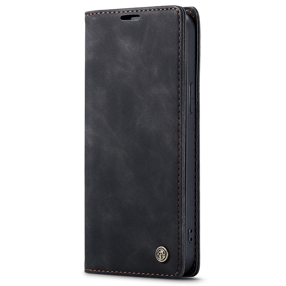Slim Portemonnaie-Hülle von CaseMe für Apple iPhone 15 Pro Max. Die Hülle bietet rundum Schutz für dein Smartphone, ohne dabei an Stil zu verlieren. Der Deckel wird durch unsichtbare Magnete geschlossen, was dem Case ein schlankes Design verleiht und das Handy nicht unnötig dick macht.