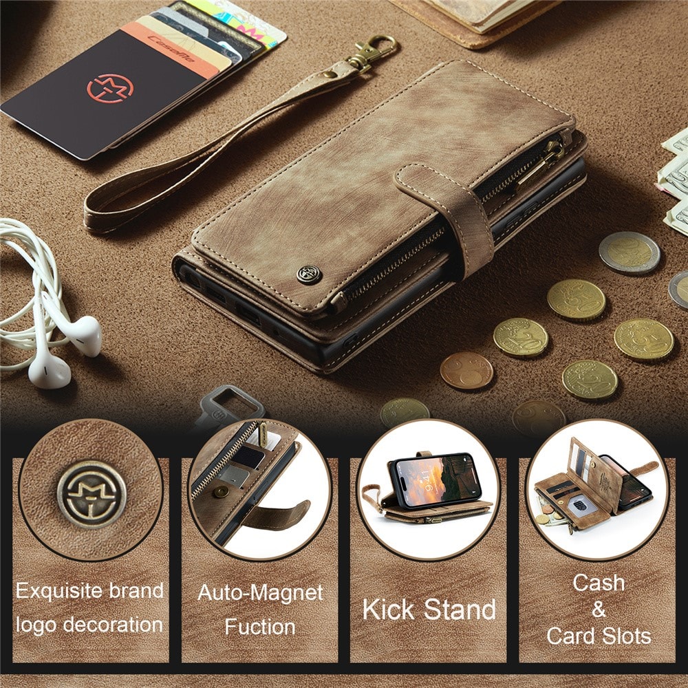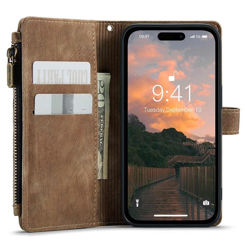 Portemonnaie-Hülle für Apple iPhone 15 Pro von CaseMe. Das Portemonnaie verfügt über 7 Kartenfächer, ein Geldscheinfach und ein geräumiges Münzfach mit Reißverschluss.