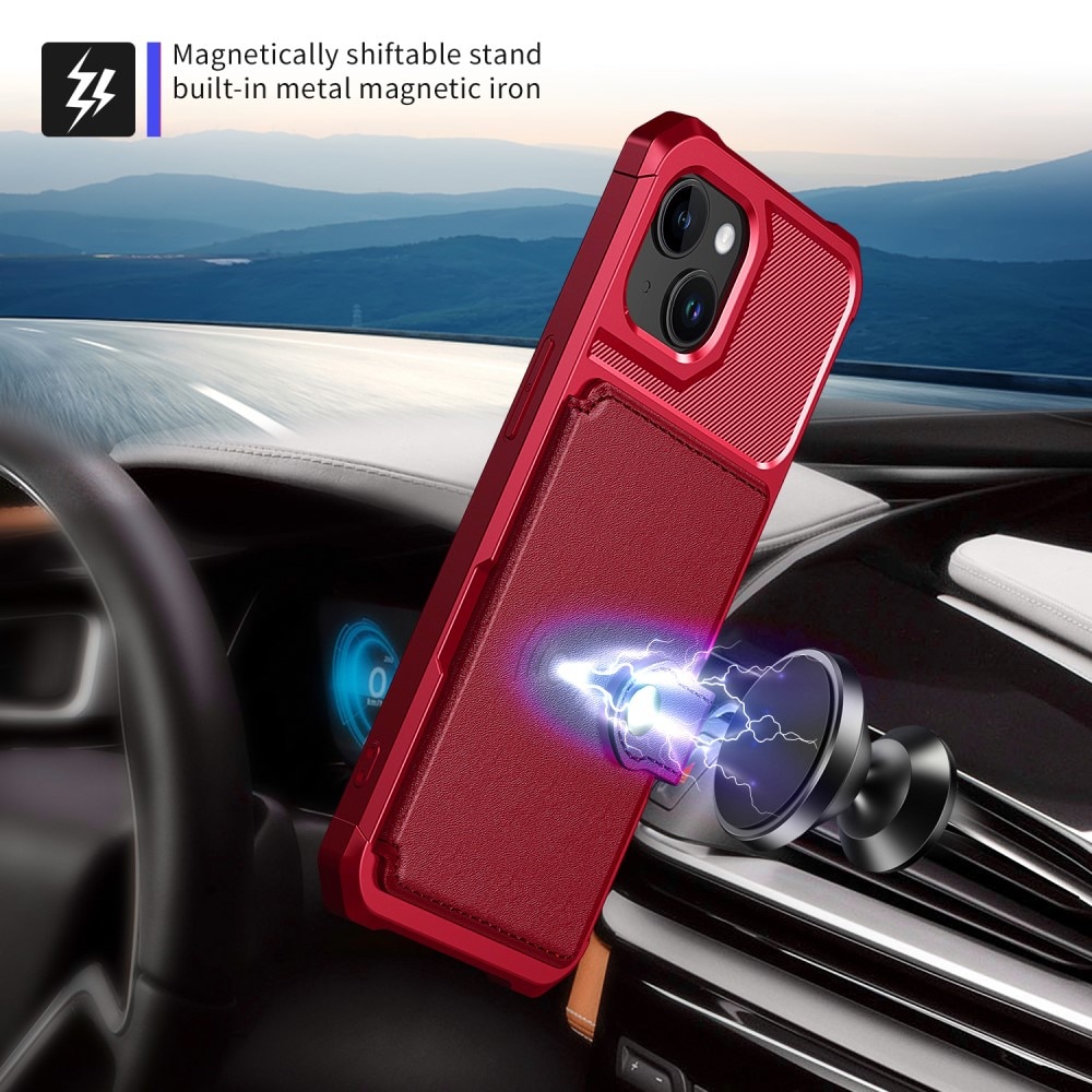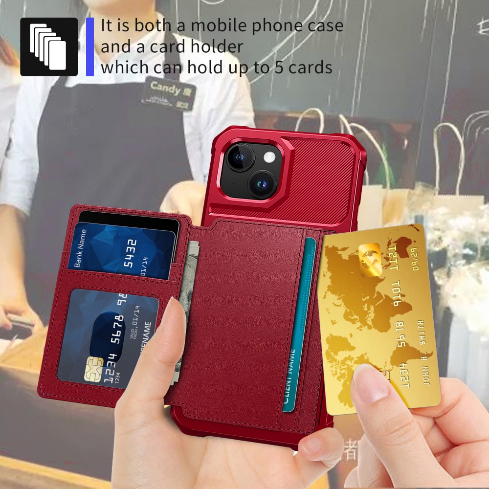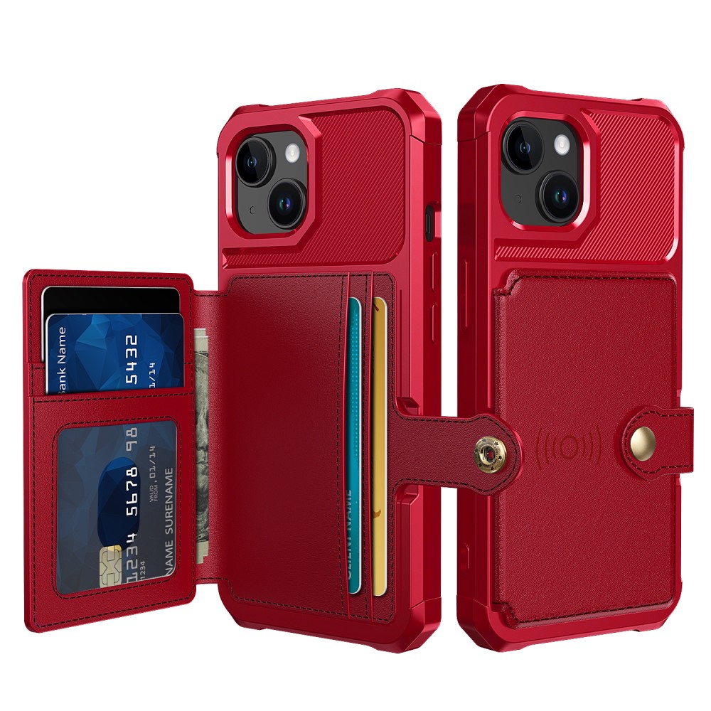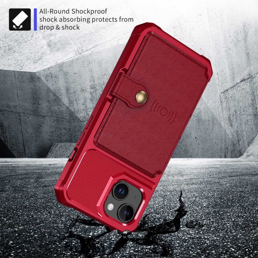 Stoßdämpfendes Handycase mit verstecktem Wallet auf der Rückseite für Apple iPhone 15. Das Case bietet ein stilvolles Design und verstärkte Ecken für besten Schutz.