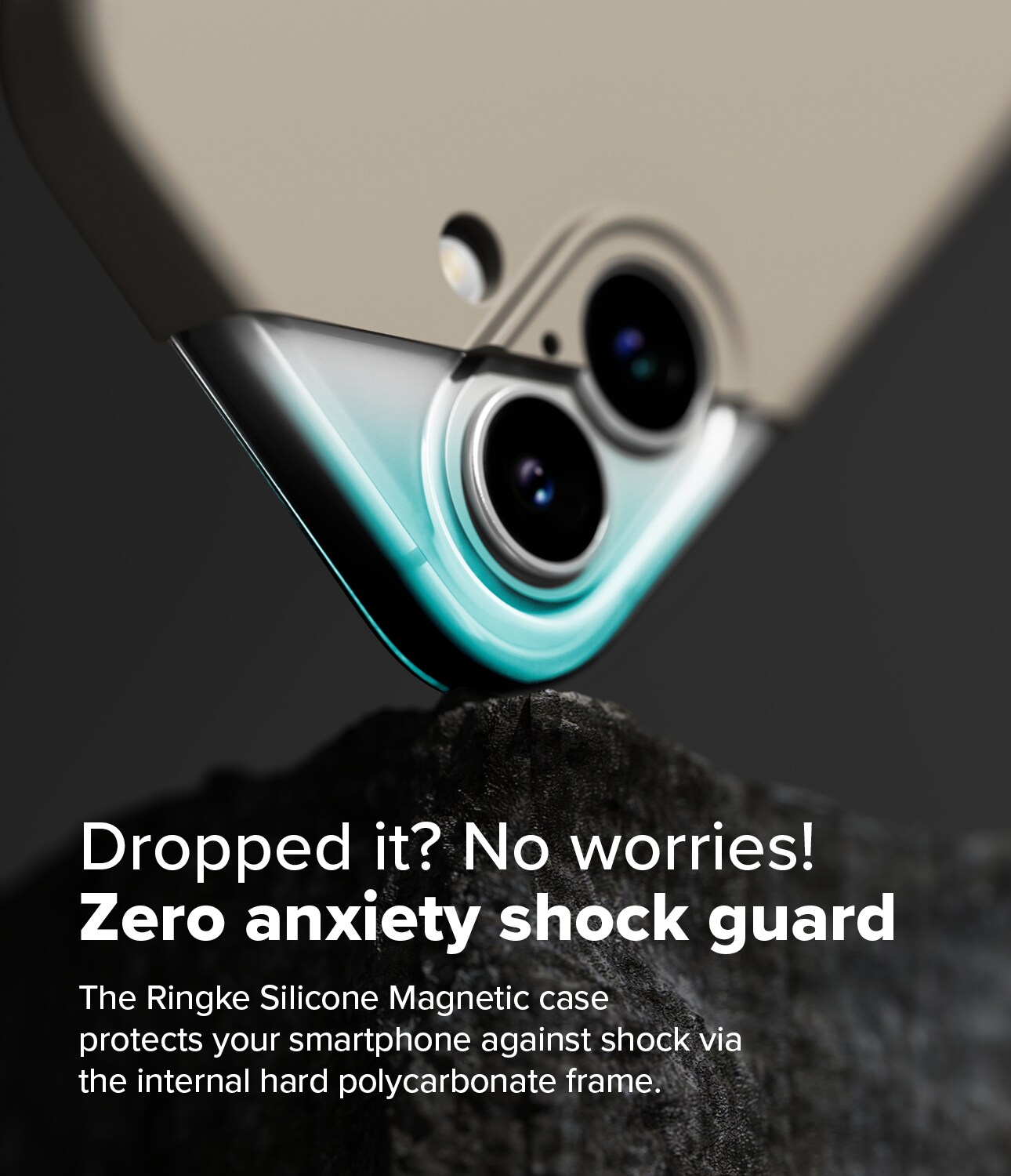 Silikon-Hülle met MagSafe für Apple iPhone 16 fra Ringke. Diese stoßdämpfende Hülle bietet zuverlässigen Schutz vor Beschädigungen und ermöglicht dank MagSafe-Unterstützung die Nutzung von MagSafe-Zubehör sowie kabelloses Laden - ohne die Hülle abnehmen zu müssen.