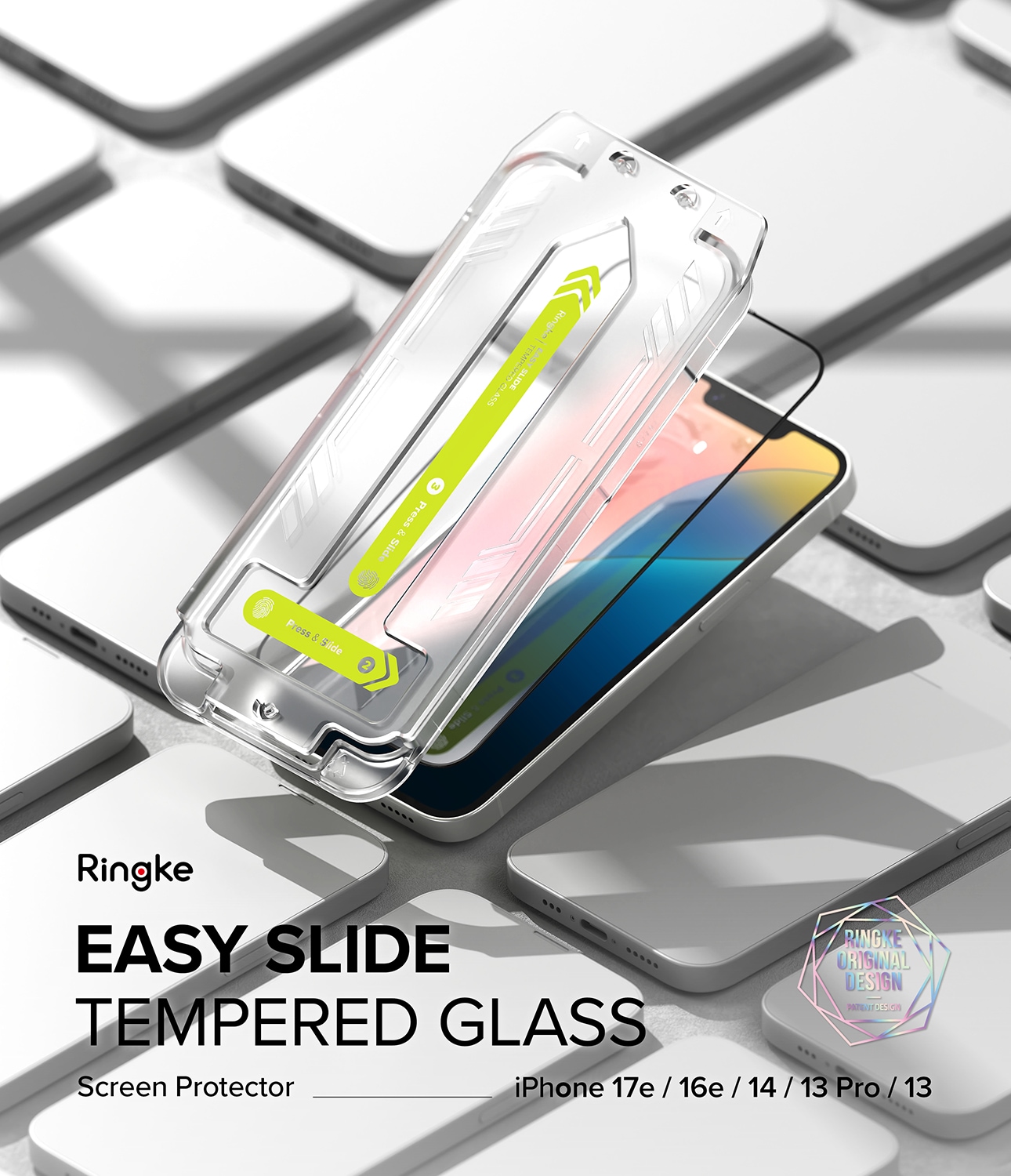 2 Stück Panzerglas für Apple iPhone 17e von Ringke. Die Schutzfolien bestehen aus gehärtetem Glas mit hoher Klarheit und Härte. Die Kanten sind abgeschrägt, um scharfe Kanten zu vermeiden.