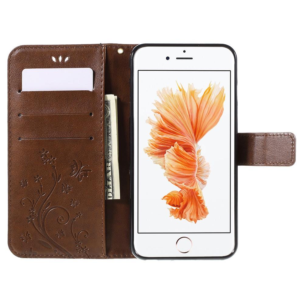Schicke Handy-Hülle aus Leder mit eingraviertem Schmetterlingsmotiv. Schützt dein Handy vor Schäden, Kratzern und Schmutz und bietet Platz für Karten und Geldscheine. Mit praktischem Magnetverschluss.