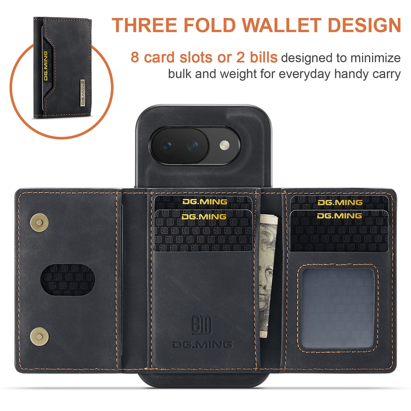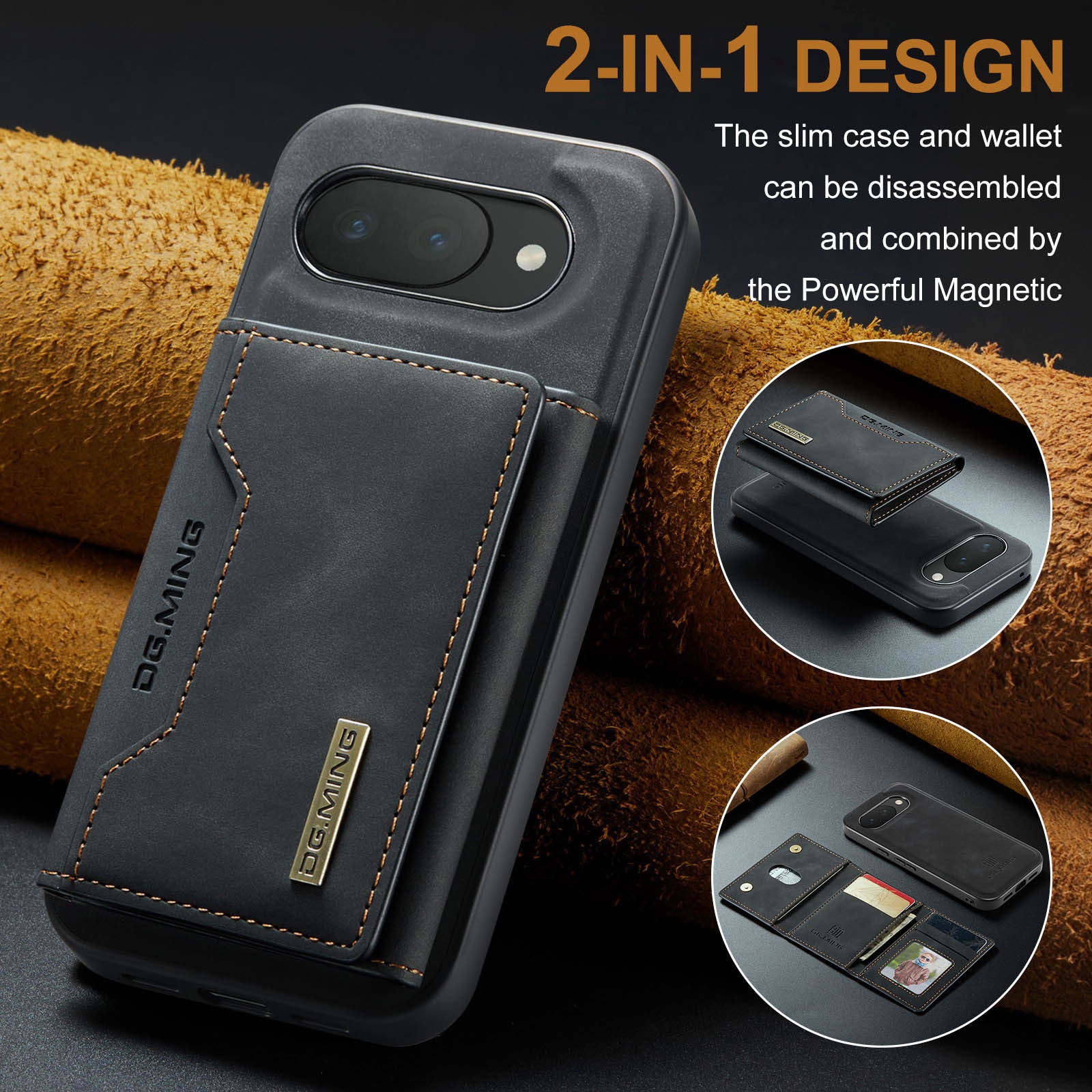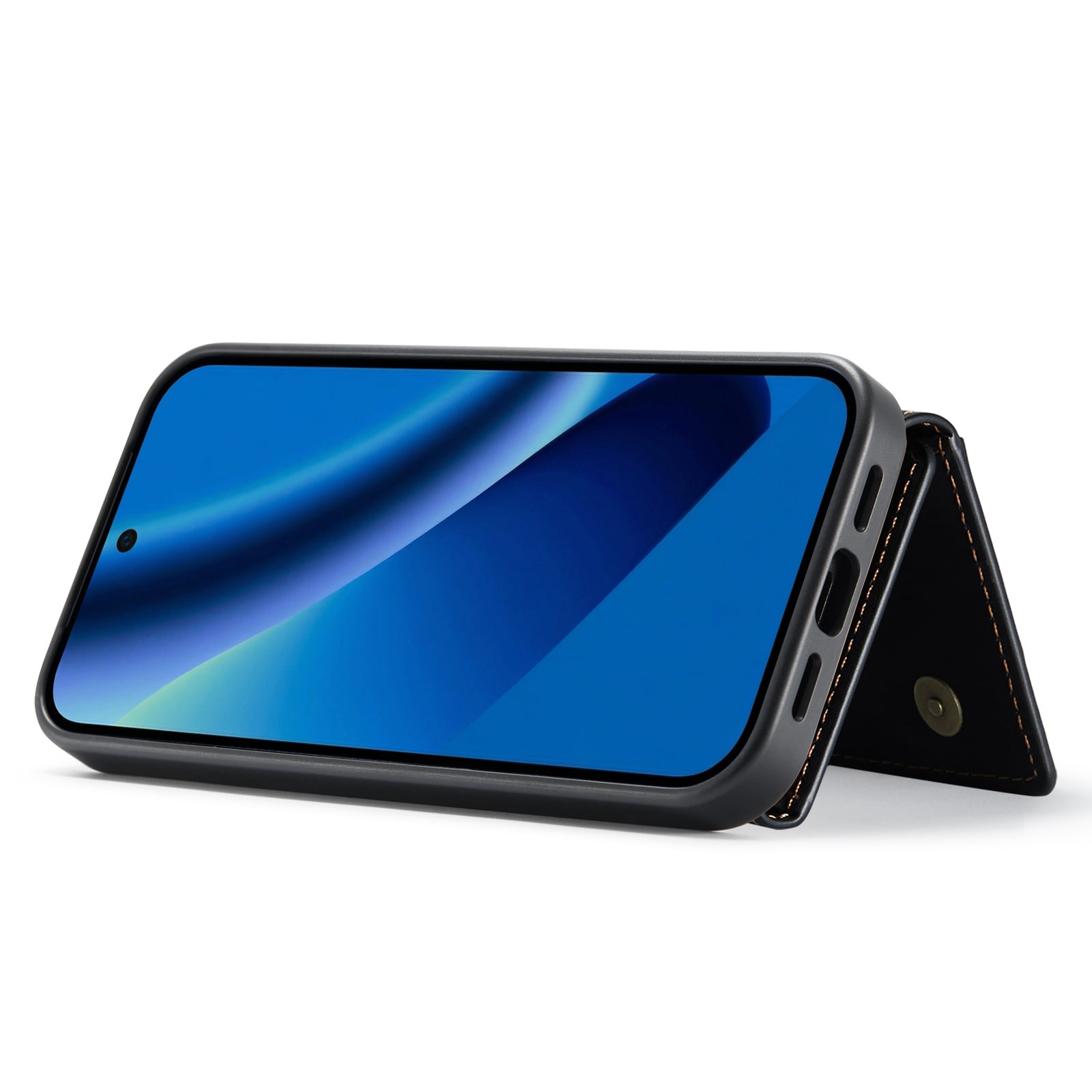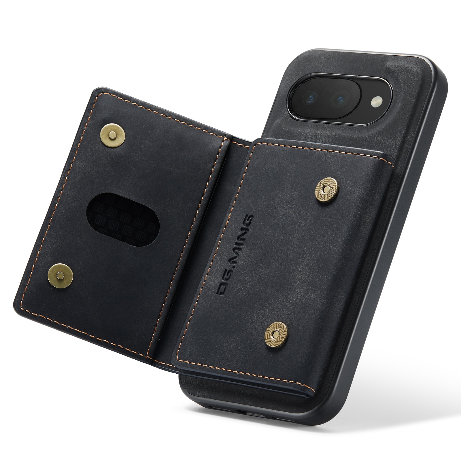 Hülle aus Kunstleder für Google Pixel 10a mit passender Geldbörse. Die Geldbörse wird magnetisch auf der Rückseite der Hülle befestigt und kann leicht abgenommen werden, wenn du sie nicht benötigst. Durch Aufklappen der Geldbörse kann sie auch als Ständer verwendet werden, sodass du bequem Filme oder Videos ansehen kannst.
