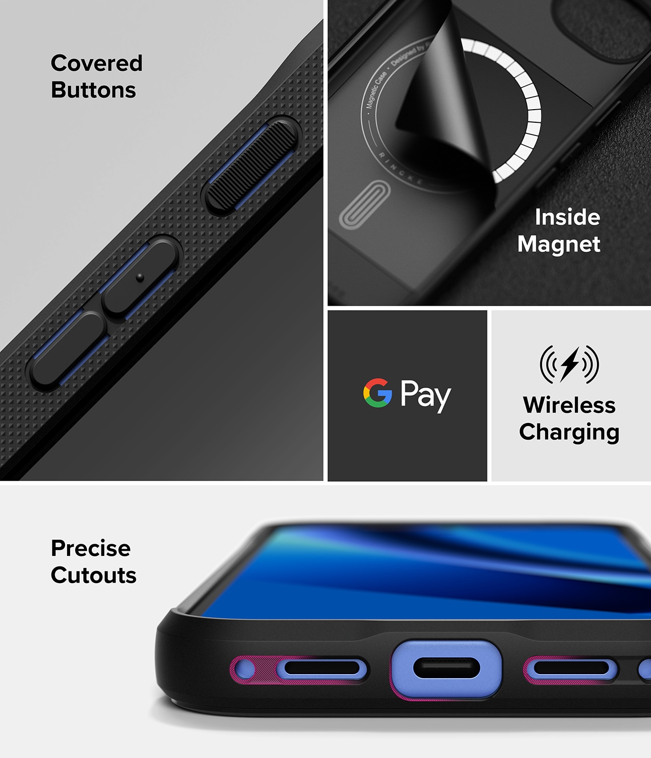 Das Onyx Magnetic ist eine robuste Hülle von Ringke für Google Pixel 10a mit MagSafe. Diese Hülle vereint stilvolles Design mit hervorragendem Stoßschutz. Sie verfügt über verstärkte Ecken, erhöhte Kanten und taktile Tasten. Dank der integrierten Magnetring-Technologie ist die Hülle vollständig kompatibel mit MagSafe-Zubehör und ermöglicht kabelloses Laden mit Hülle.