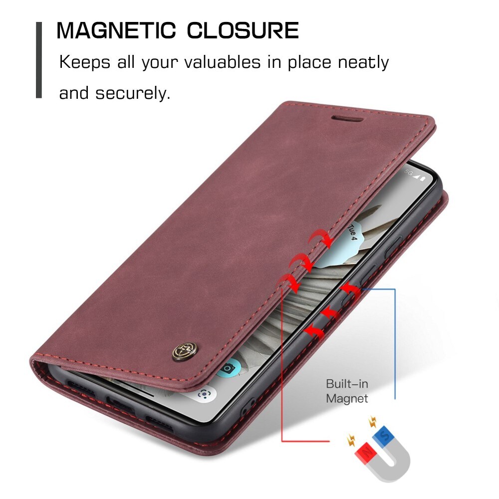 Slim Portemonnaie-Hülle von CaseMe für Google Pixel 7 Pro. Die Hülle bietet rundum Schutz für dein Smartphone, ohne dabei an Stil zu verlieren. Der Deckel wird durch unsichtbare Magnete geschlossen, was dem Case ein schlankes Design verleiht und das Handy nicht unnötig dick macht.