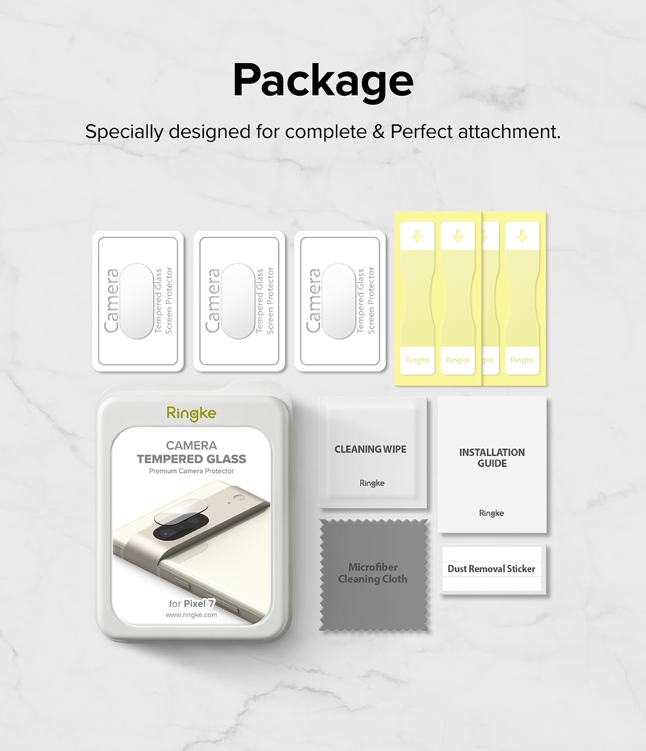 Schützende Kameralinsenabdeckung für das Kameragehäuse deines Google Pixel 7 von Ringke. Diese Abdeckung schützt effektiv vor Kratzern und Beschädigungen, damit du lange gestochen scharfe Fotos machen kannst.