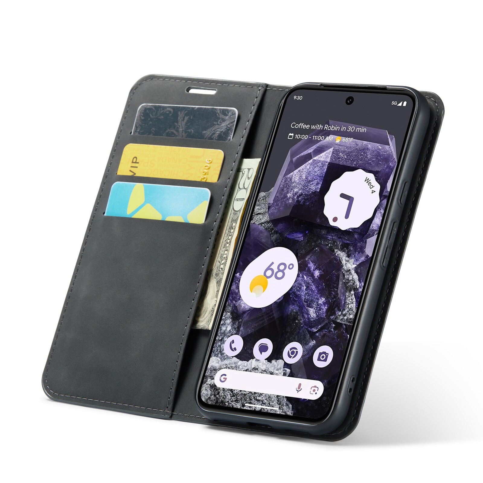 Handytasche für Google Pixel 8a. Das Etui verfügt über eine seidenweiche Hülle aus strapazierfähigem Kunstleder und ein integriertes Case aus stoßabsorbierendem TPU. Die Klappe bietet hervorragenden Schutz vor Kratzern auf dem Bildschirm, während das integrierte Case Stöße und Stürze effektiv abfängt.