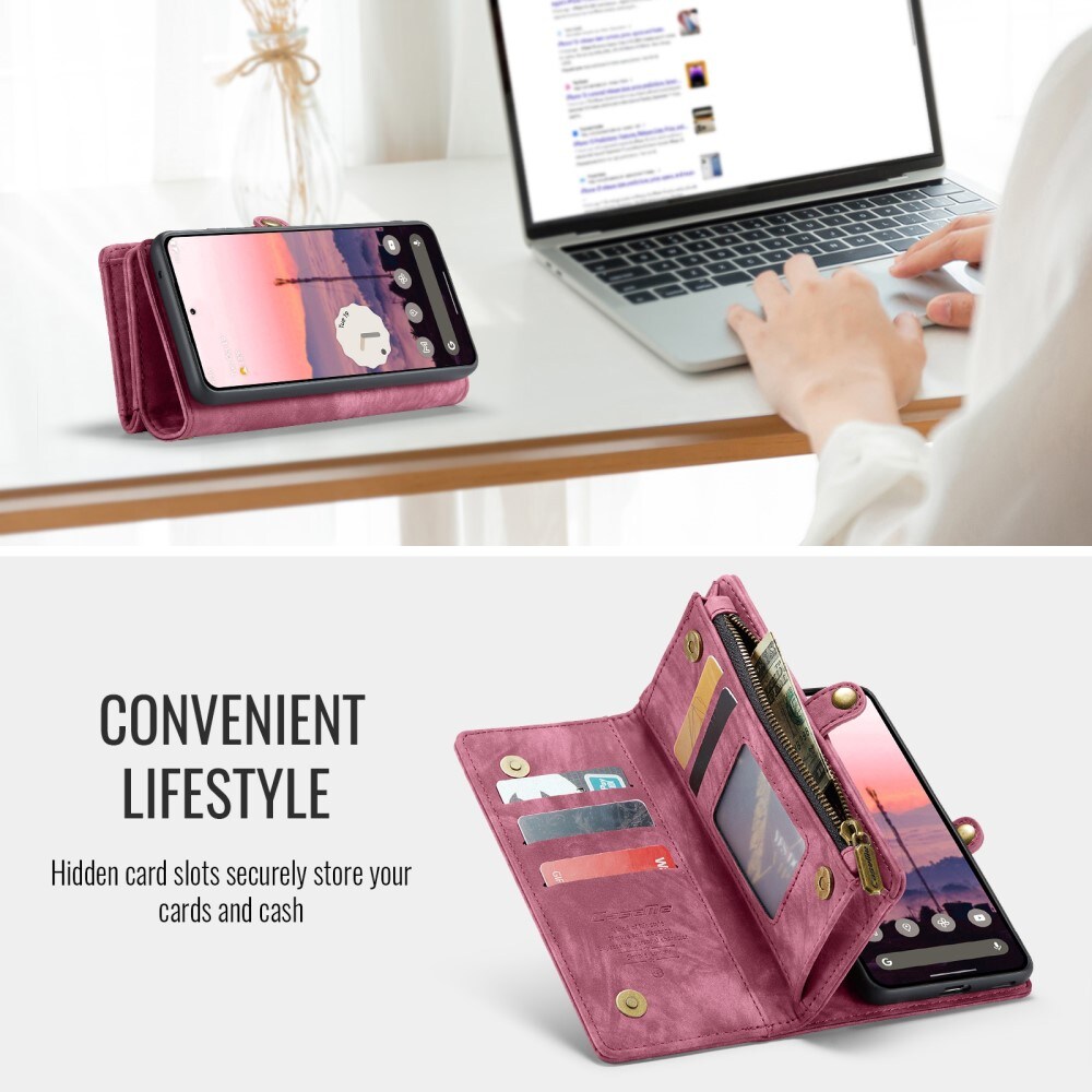 Multi-Slot Handytasche für Google Pixel 9a. Geräumige und sehr praktische Portemonnaie-Hülle mit viel Platz für Karten und Geldscheine. Dein Handy sitzt sicher in der abnehmbaren Magnet-Hülle, und du kannst jederzeit zwischen nur Hülle oder Portemonnaie-Hülle wechseln.