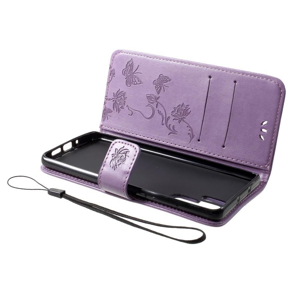 Schicke Handy-Hülle aus Leder mit eingraviertem Schmetterlingsmotiv. Schützt dein Handy vor Schäden, Kratzern und Schmutz und bietet Platz für Karten und Geldscheine. Mit praktischem Magnetverschluss.