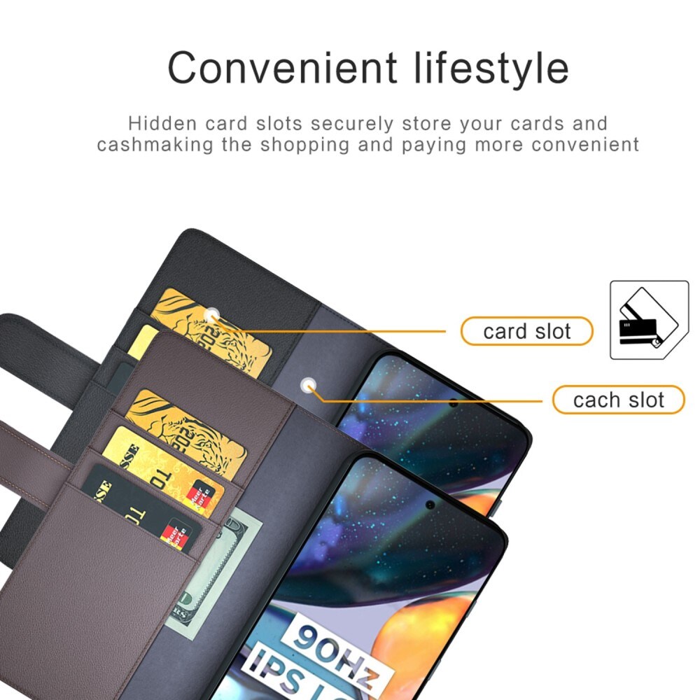 Diese stilechte Portemonnaie-Hülle aus Echtleder schützt dein Handy vor unnötigen Gebrauchsspuren und Schäden. Dank der eingebauten Standfunktion kannst du dir bequem Filme und Sportübertragungen ansehen. Du bist unterwegs? Kein Problem! Diese Hülle bietet genug Platz für Karten und Geldscheine und kann dein gesamtes Portemonnaie ersetzen.