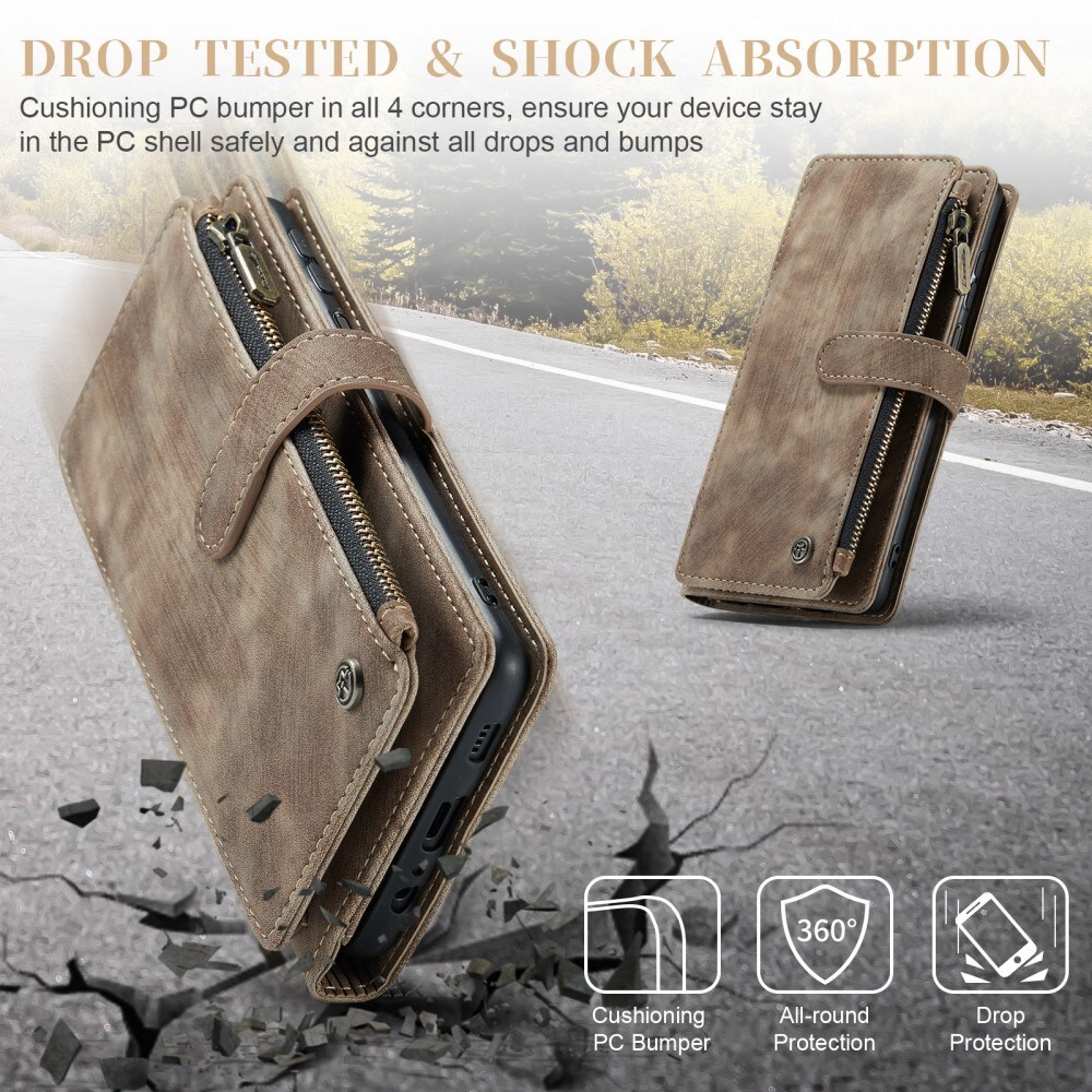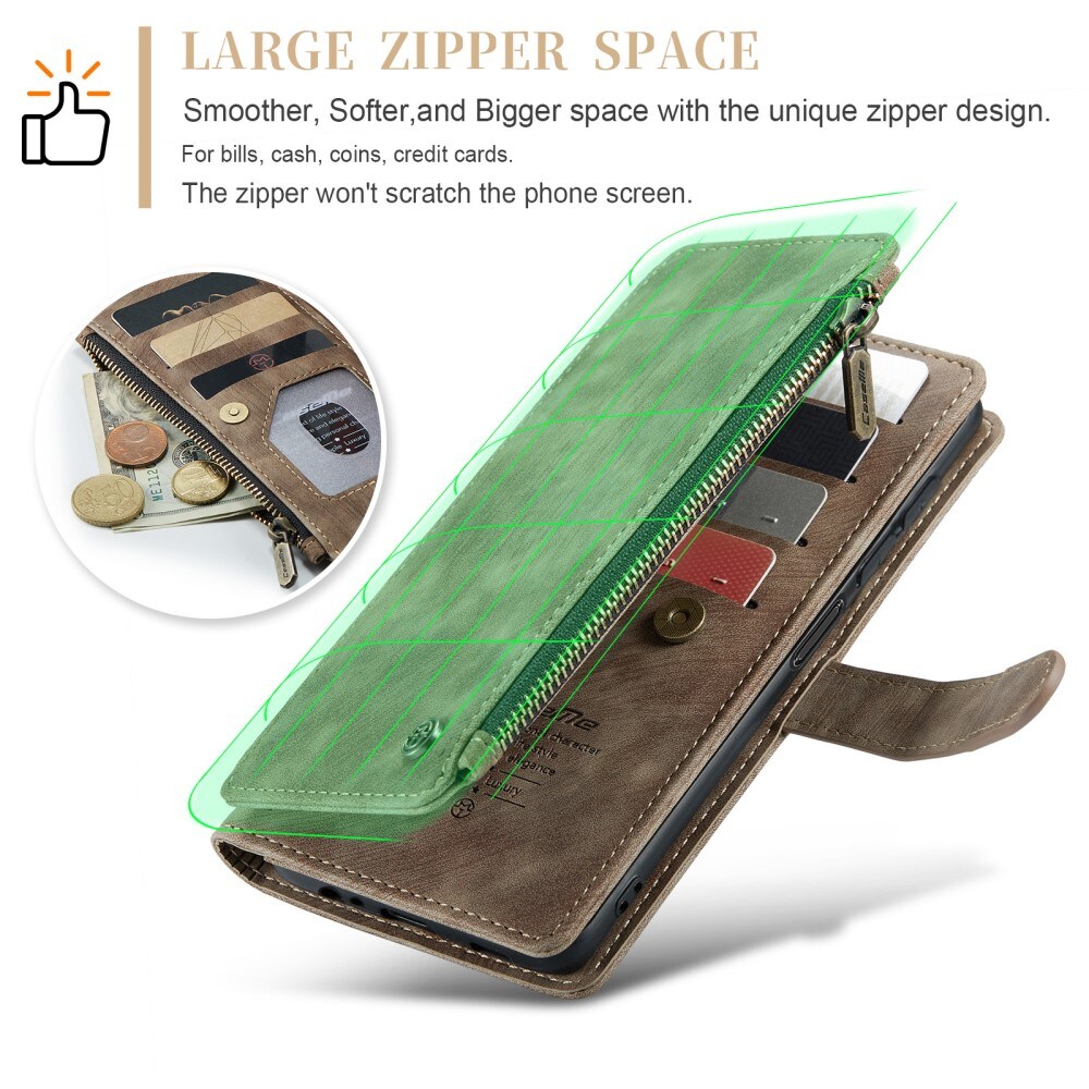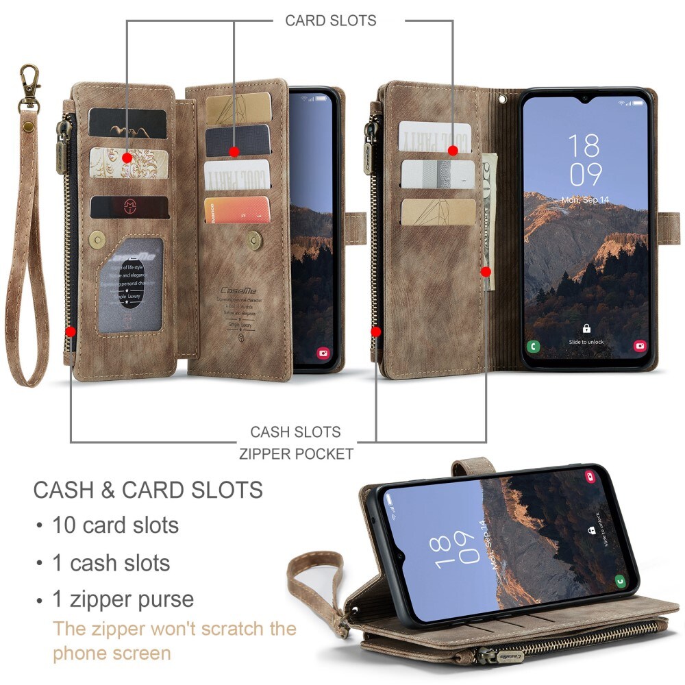 Portemonnaie-Hülle für Samsung Galaxy A14 von CaseMe. Das Portemonnaie verfügt über 7 Kartenfächer, ein Geldscheinfach und ein geräumiges Münzfach mit Reißverschluss.