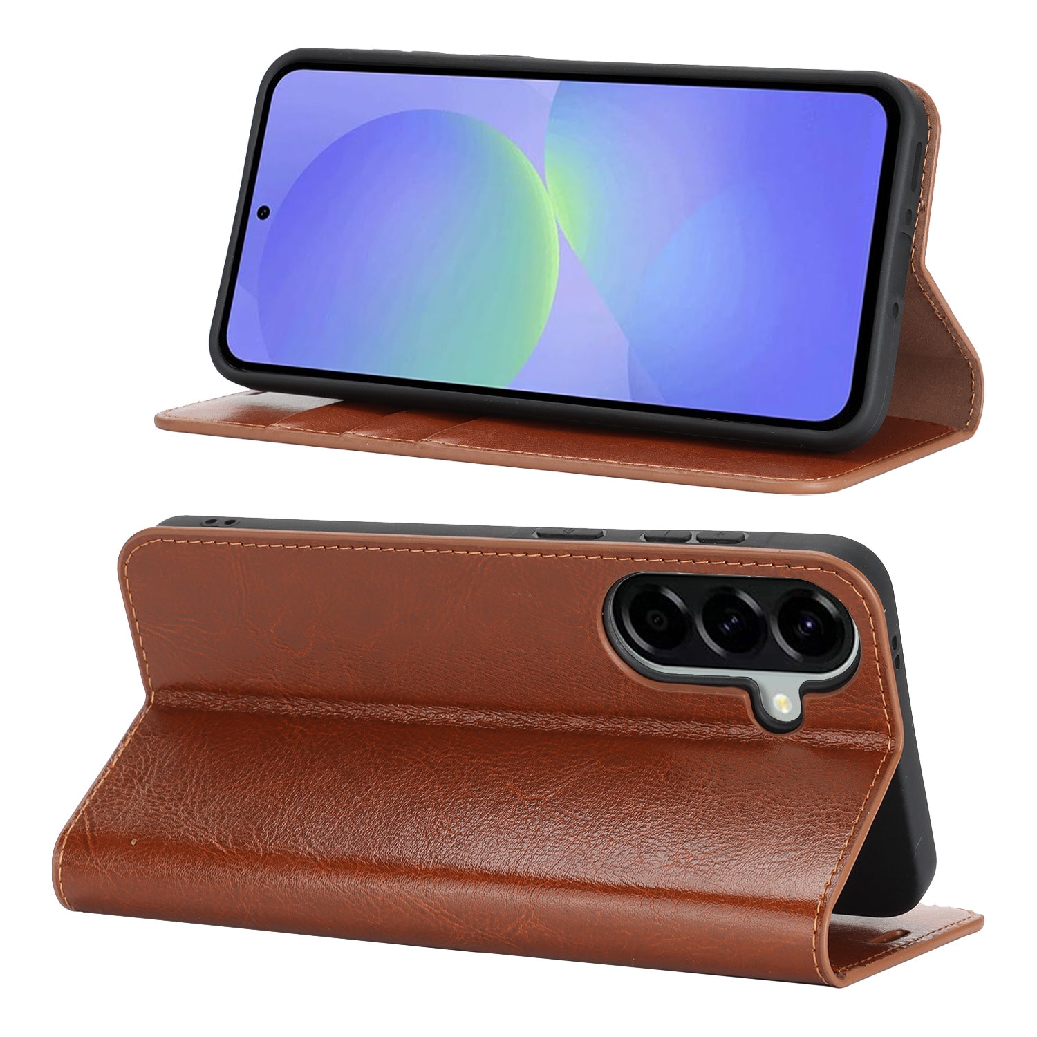 Schützen Sie Ihr Samsung Galaxy A37 mit einer eleganten Hülle aus echtem Leder. Trotz des schlanken und stilvollen Designs verfügt die Hülle über 3 Kartenfächer und 1 Geldscheinfach auf der Innenseite des Deckels. Ihr Telefon wird sicher in einer flexiblen Innenschale gehalten.