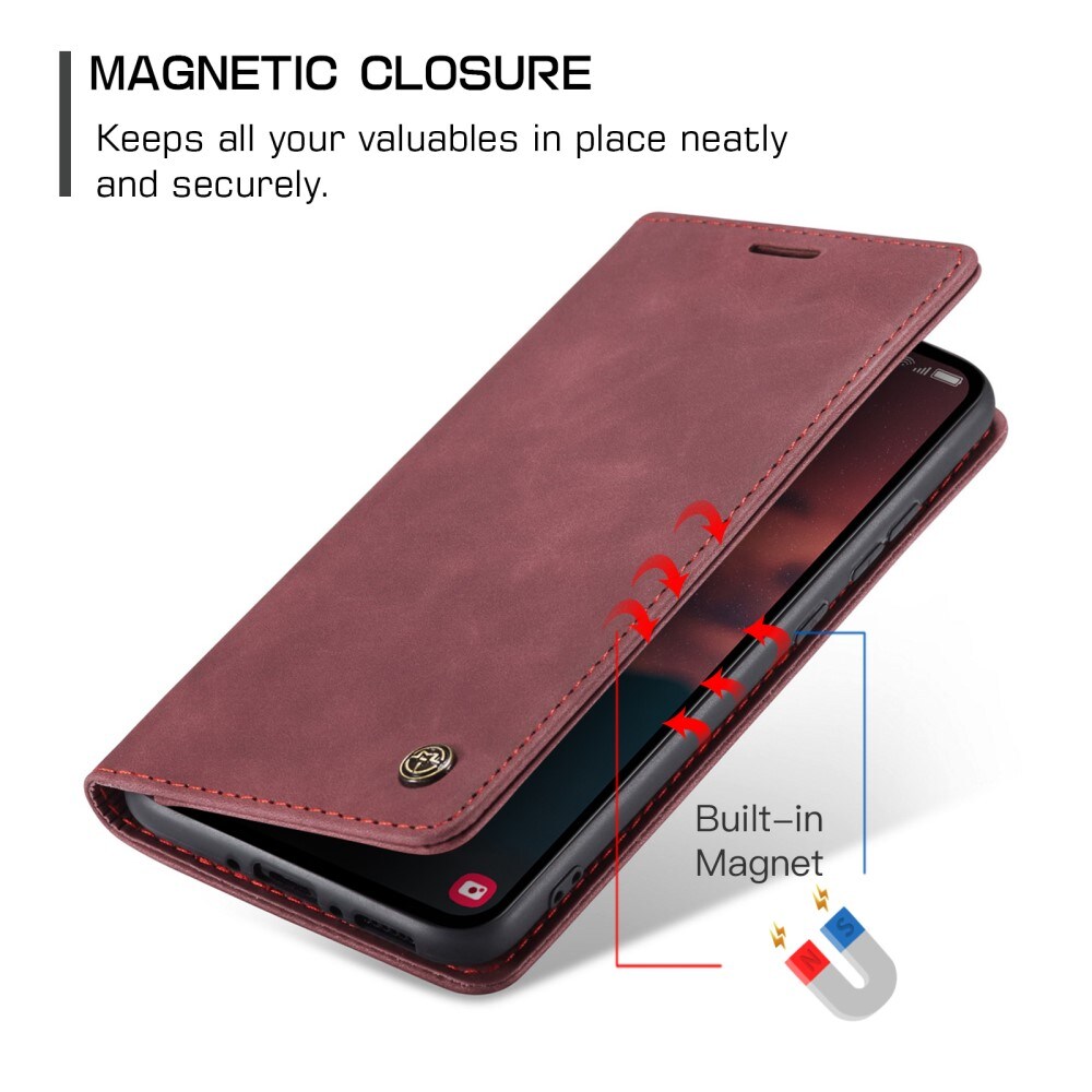 Slim Portemonnaie-Hülle von CaseMe für Samsung Galaxy A54. Die Hülle bietet rundum Schutz für dein Smartphone, ohne dabei an Stil zu verlieren. Der Deckel wird durch unsichtbare Magnete geschlossen, was dem Case ein schlankes Design verleiht und das Handy nicht unnötig dick macht.