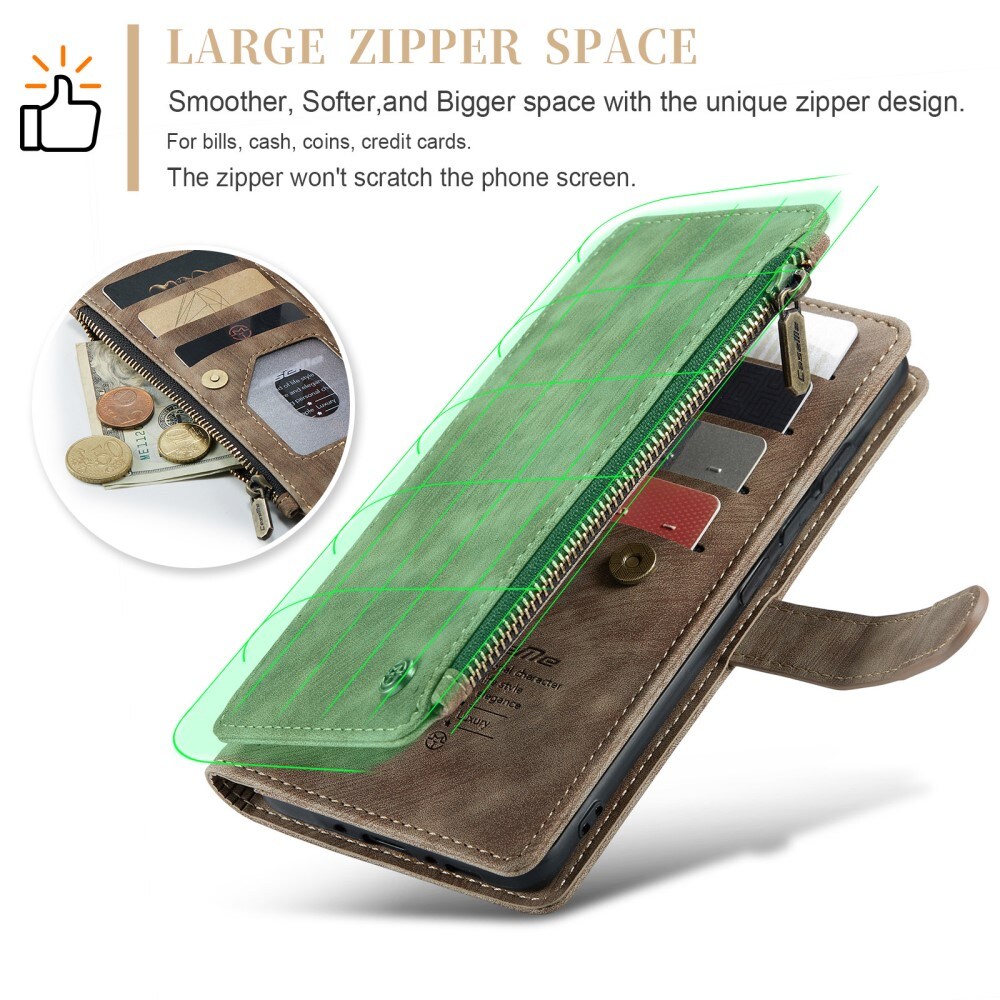 Portemonnaie-Hülle für Samsung Galaxy A54 von CaseMe. Das Portemonnaie verfügt über 7 Kartenfächer, ein Geldscheinfach und ein geräumiges Münzfach mit Reißverschluss.