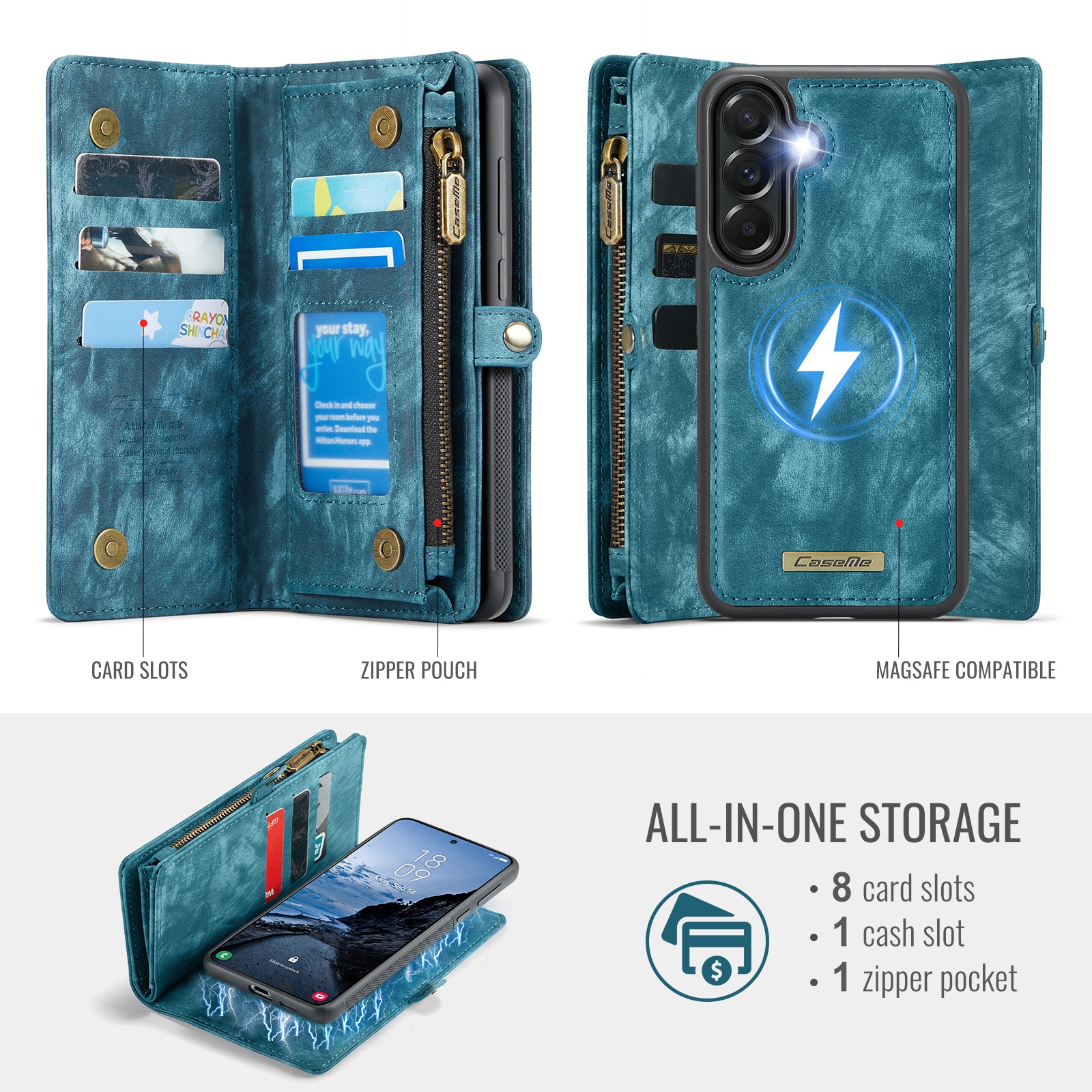 Multi-Slot Handytasche für Samsung Galaxy A57. Geräumige und sehr praktische Portemonnaie-Hülle mit viel Platz für Karten und Geldscheine. Dein Handy sitzt sicher in der abnehmbaren Magnet-Hülle, und du kannst jederzeit zwischen nur Hülle oder Portemonnaie-Hülle wechseln.
