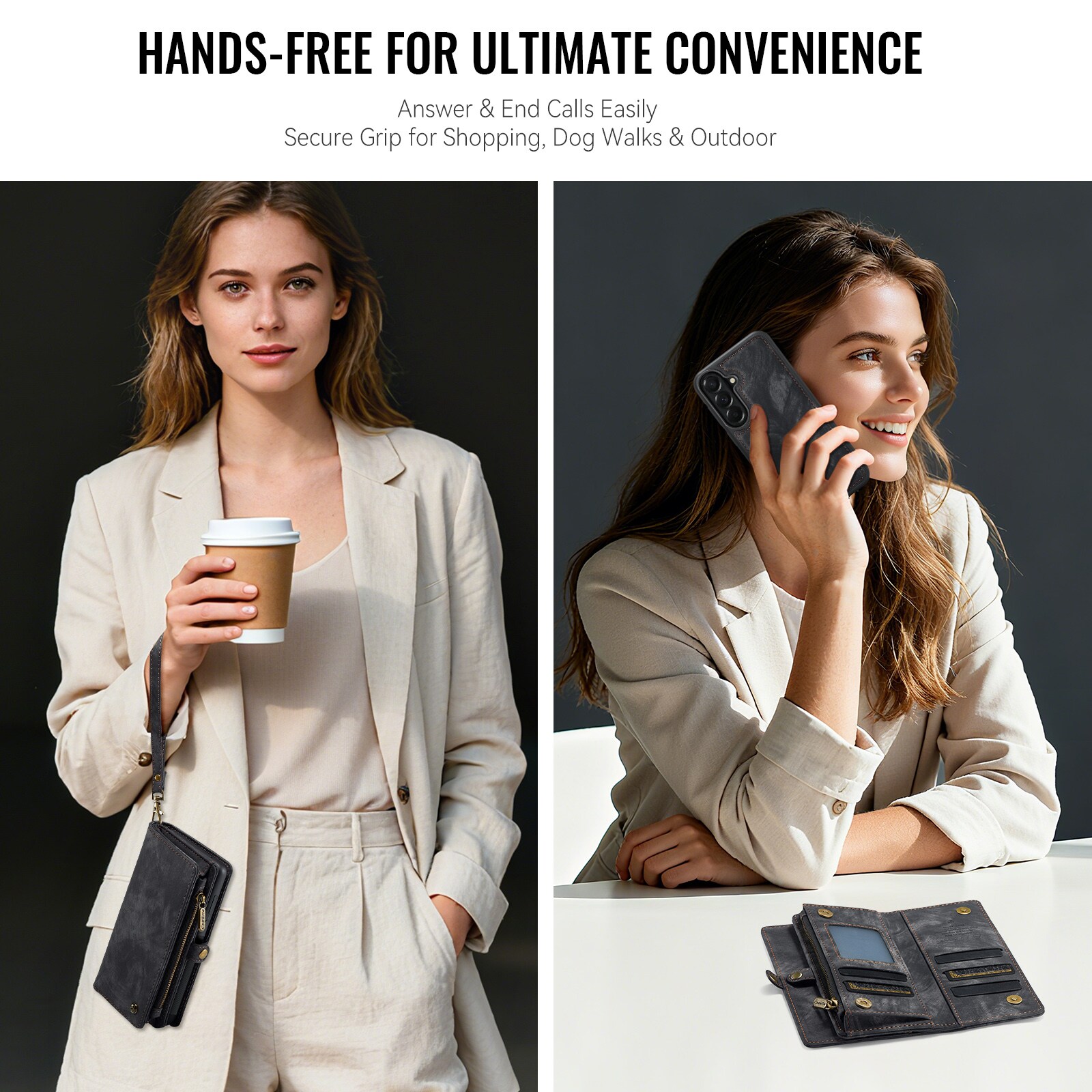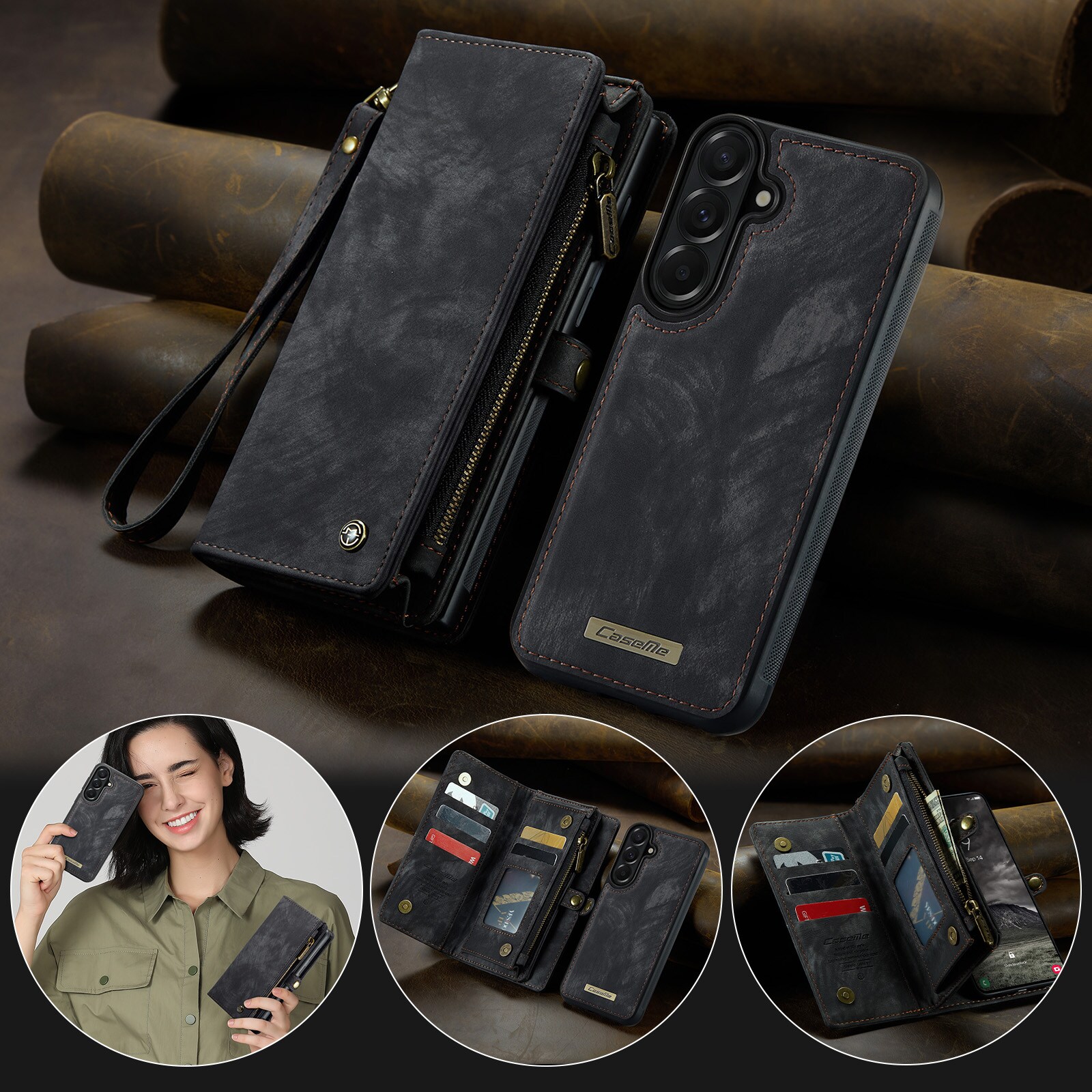 Multi-Slot Handytasche für Samsung Galaxy A57. Geräumige und sehr praktische Portemonnaie-Hülle mit viel Platz für Karten und Geldscheine. Dein Handy sitzt sicher in der abnehmbaren Magnet-Hülle, und du kannst jederzeit zwischen nur Hülle oder Portemonnaie-Hülle wechseln.