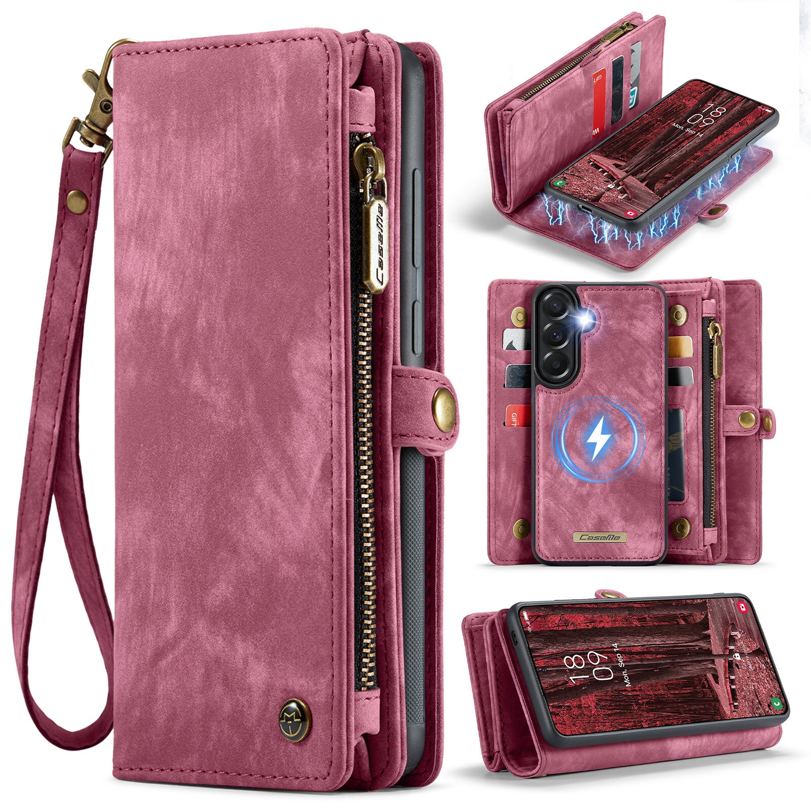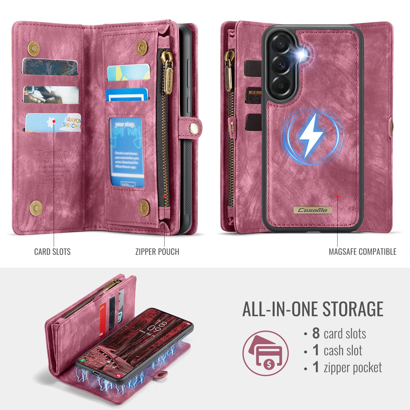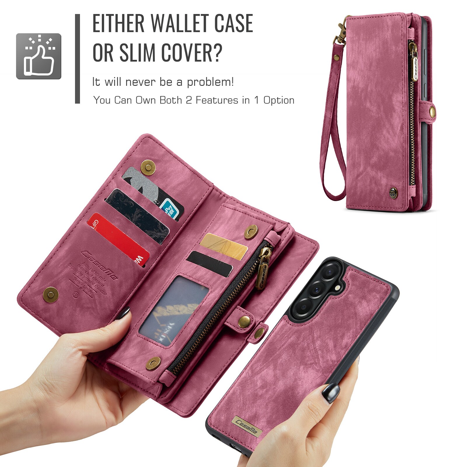 Multi-Slot Handytasche für Samsung Galaxy A57. Geräumige und sehr praktische Portemonnaie-Hülle mit viel Platz für Karten und Geldscheine. Dein Handy sitzt sicher in der abnehmbaren Magnet-Hülle, und du kannst jederzeit zwischen nur Hülle oder Portemonnaie-Hülle wechseln.