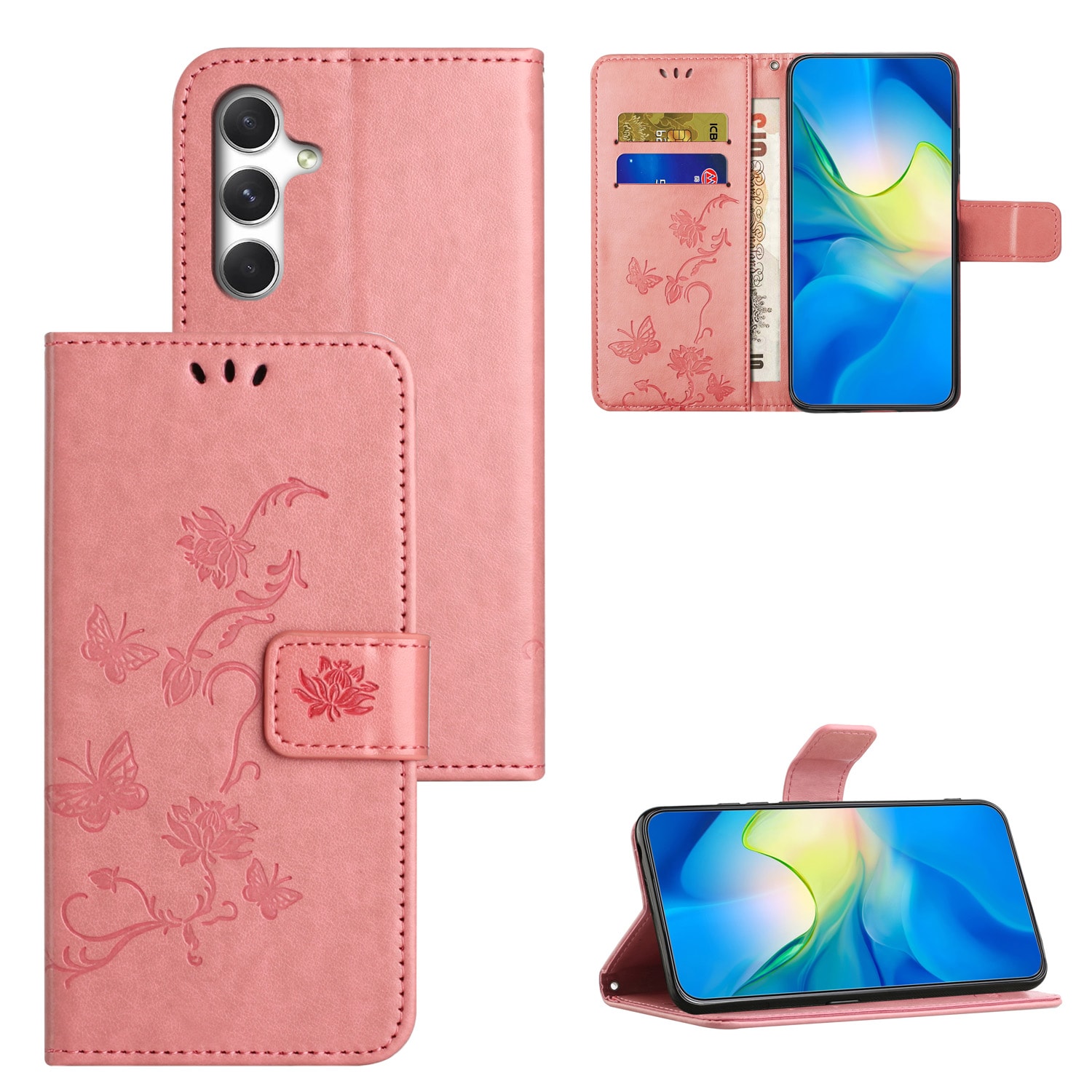 Schicke Handy-Hülle aus Leder mit eingraviertem Schmetterlingsmotiv. Schützt dein Handy vor Schäden, Kratzern und Schmutz und bietet Platz für Karten und Geldscheine. Mit praktischem Magnetverschluss.