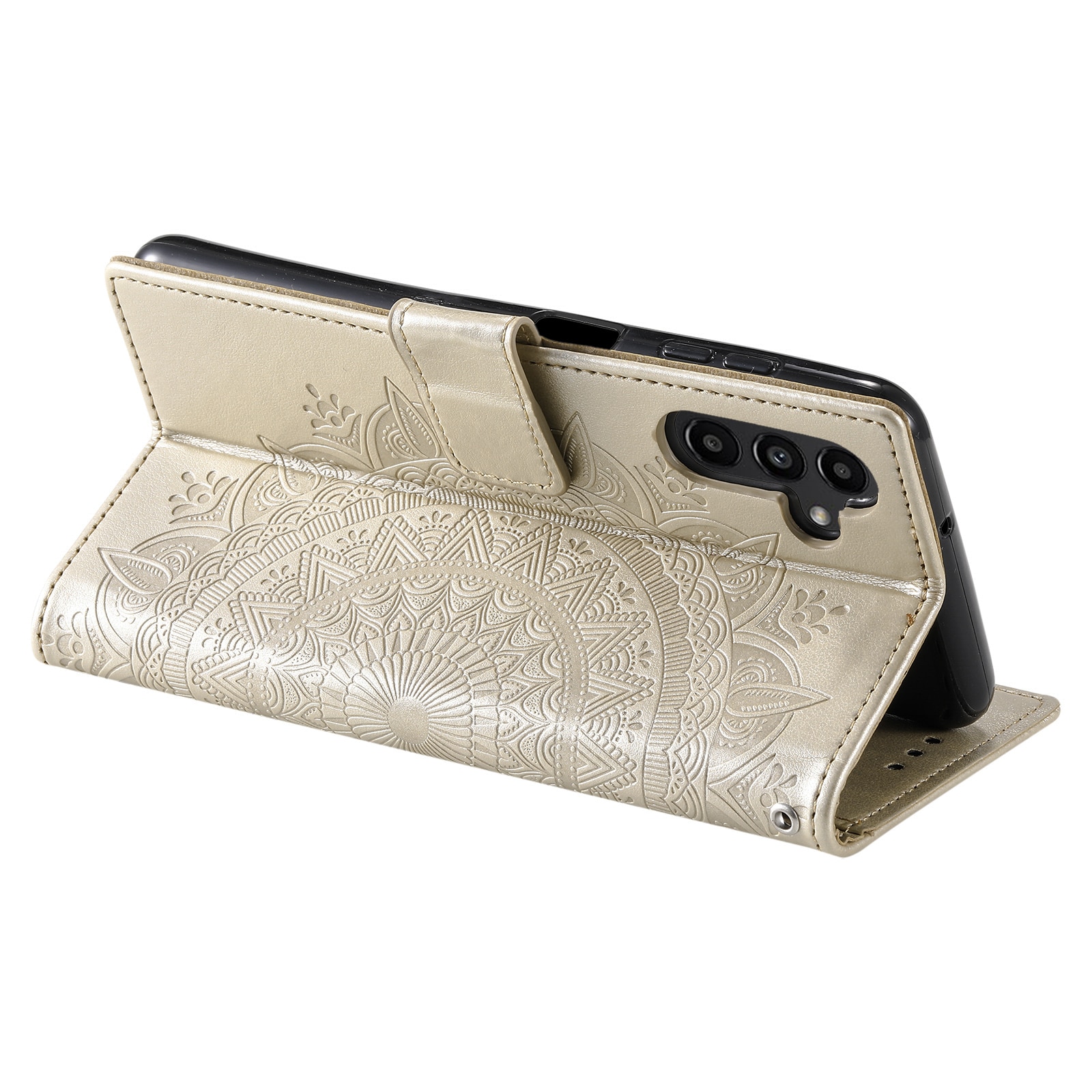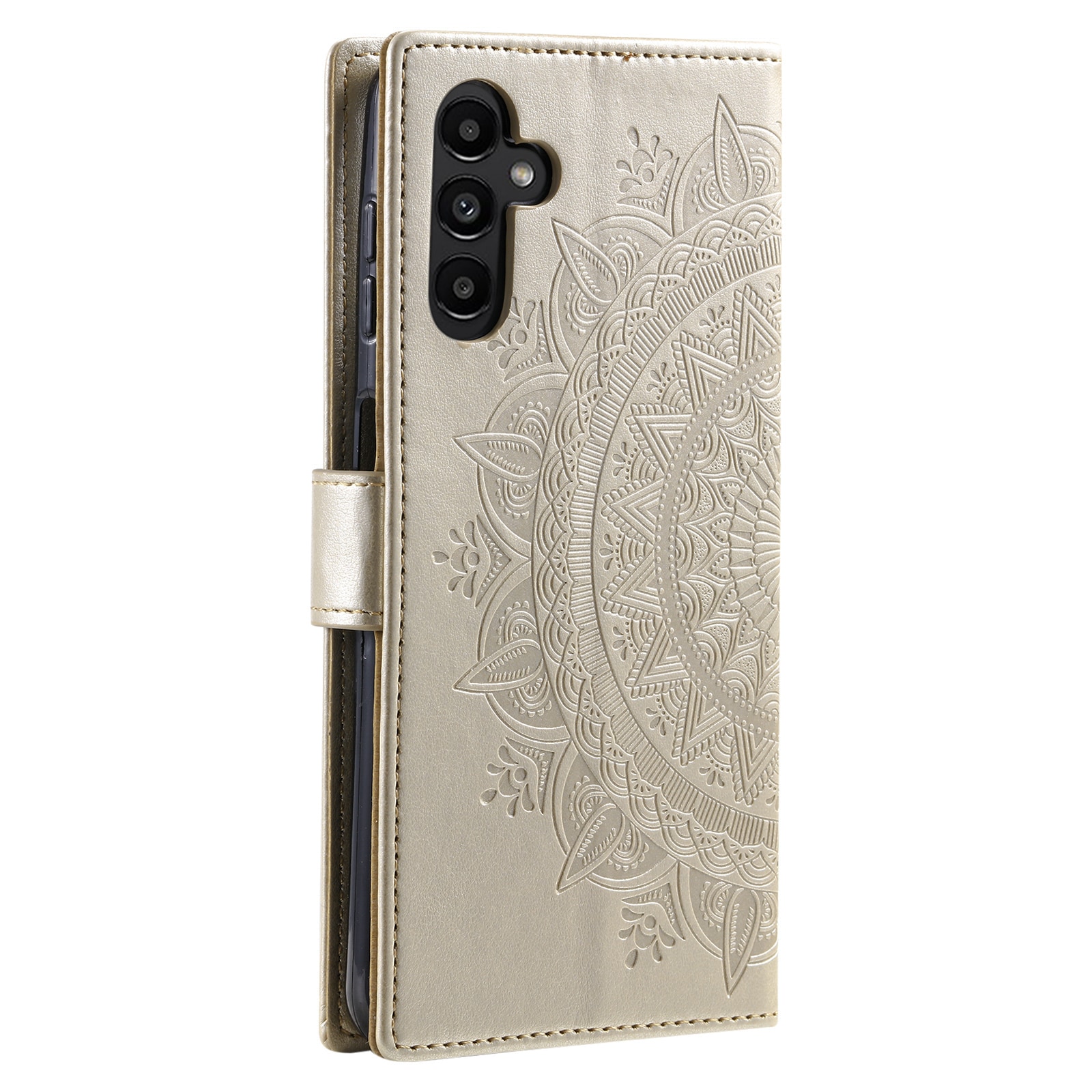Gemusterte Handytasche für Samsung Galaxy A57. Schöne Handy-Hülle mit Kartenhalter, die ein herrliches Mandalassmotiv hat, und die dein Handy vor unnötigem Schaden und Verschleiß schützt. Mit Platz für Kreditkarten, Ausweisen und Geldscheinen so dass du das Portemonnaie oft zuhause lassen kannst. Die Hülle schützt den Display deines Handy effektiv und öffnet/schliesst sich mit Hilfe eines Magnetverschlusses. Ein abnehmbarer Tragegurt ist inbegriffen.