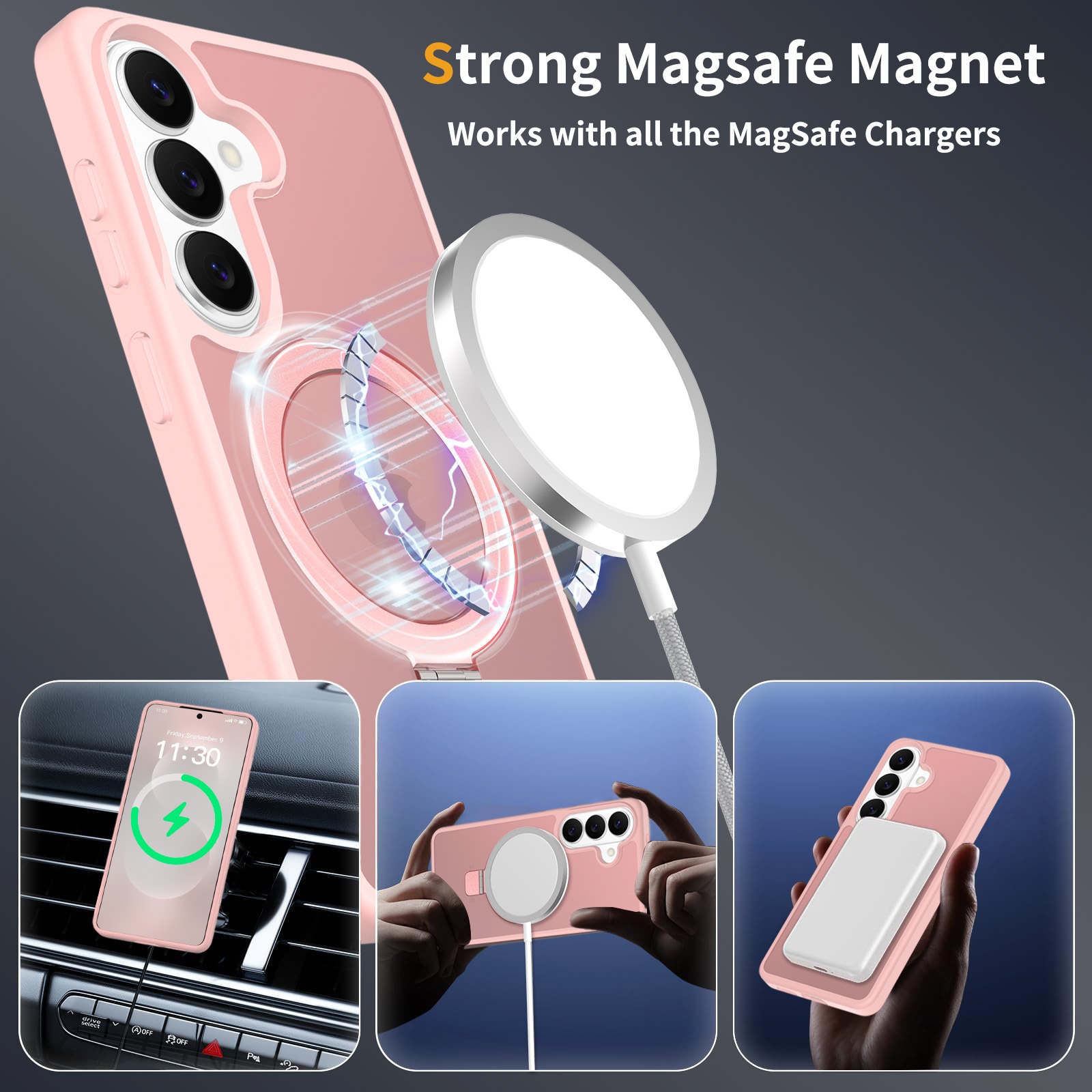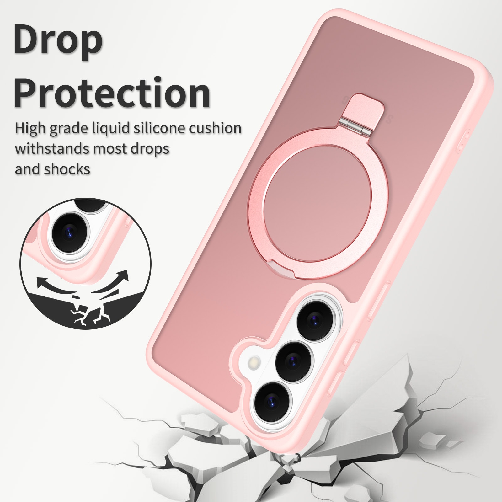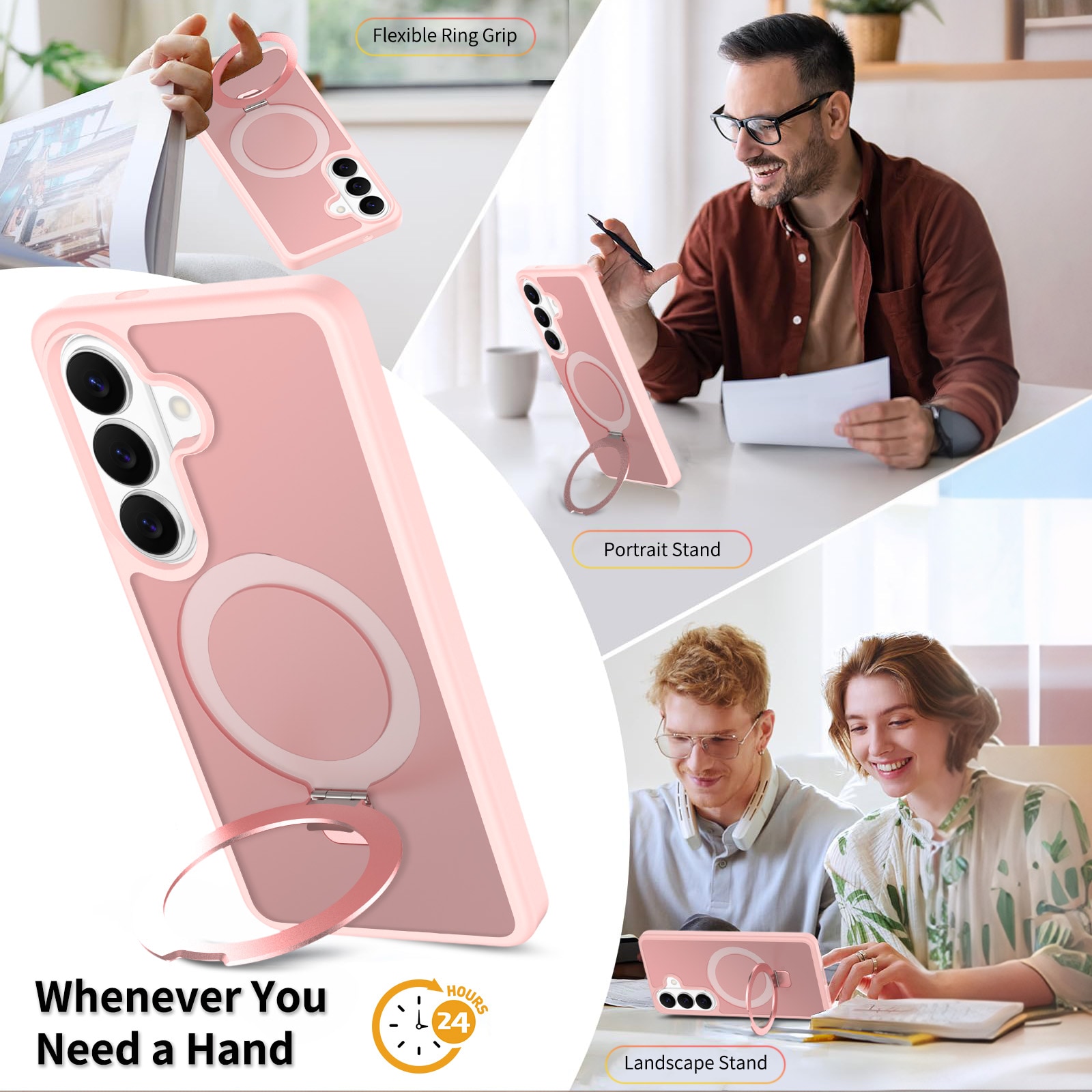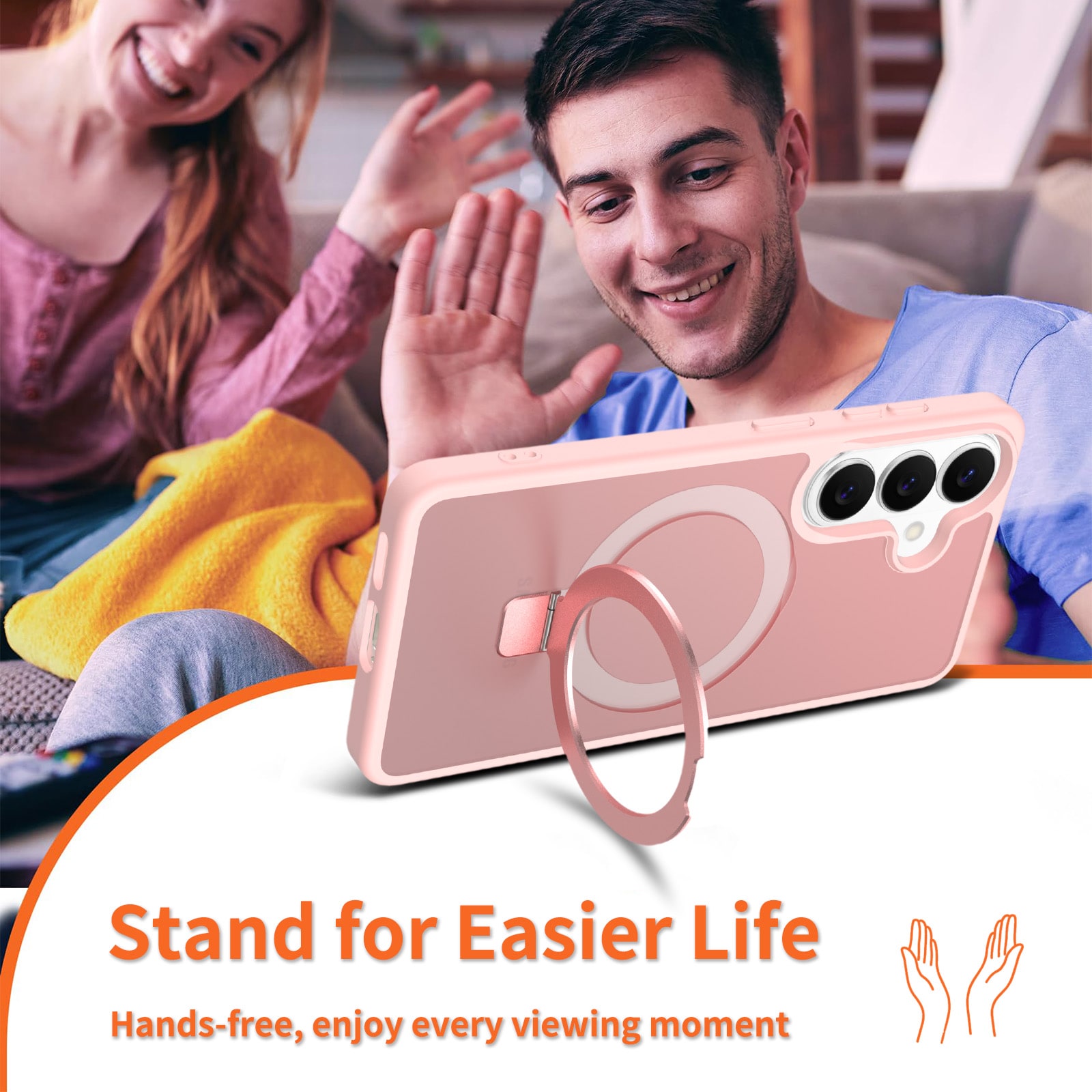 MagSafe Schutzhülle Hybrid für Samsung Galaxy A57. Für optimalen Schutz vor Stößen und Stürzen verfügt die Hülle über ein zweiteiliges Design mit einem TPU-Kern und einer Außenschale aus Hartplastik. Der Ring auf der Rückseite ist magnetisch und kompatibel mit MagSafe-Zubehör wie Ladegeräten und Kartenhaltern. Er kann außerdem als Ständer zum Ansehen von Filmen, Videos oder zum Spielen verwendet werden.