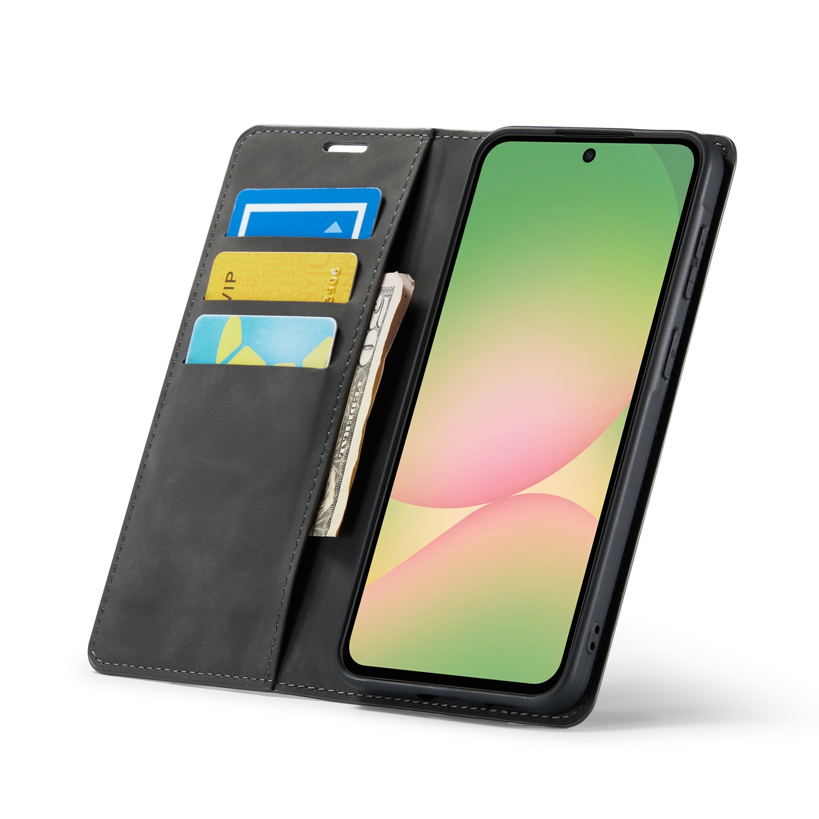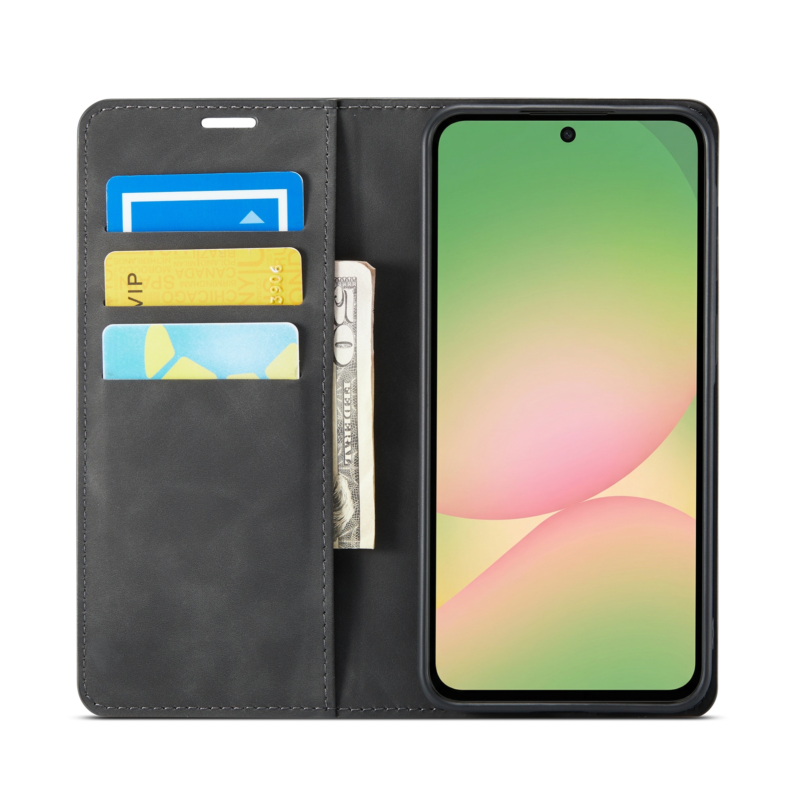 Handytasche für Samsung Galaxy A57. Das Etui verfügt über eine seidenweiche Hülle aus strapazierfähigem Kunstleder und ein integriertes Case aus stoßabsorbierendem TPU. Die Klappe bietet hervorragenden Schutz vor Kratzern auf dem Bildschirm, während das integrierte Case Stöße und Stürze effektiv abfängt.