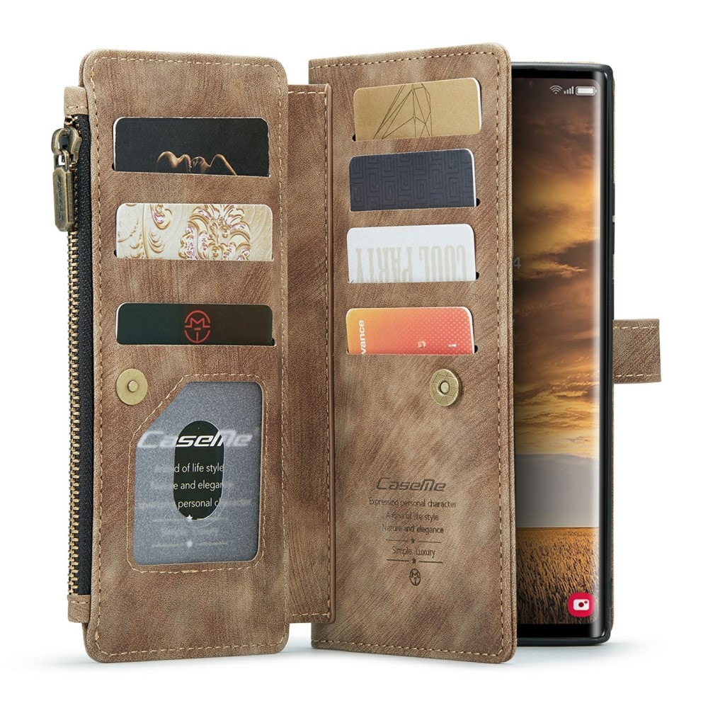Portemonnaie-Hülle für Samsung Galaxy S24 Ultra von CaseMe. Das Portemonnaie verfügt über 7 Kartenfächer, ein Geldscheinfach und ein geräumiges Münzfach mit Reißverschluss.